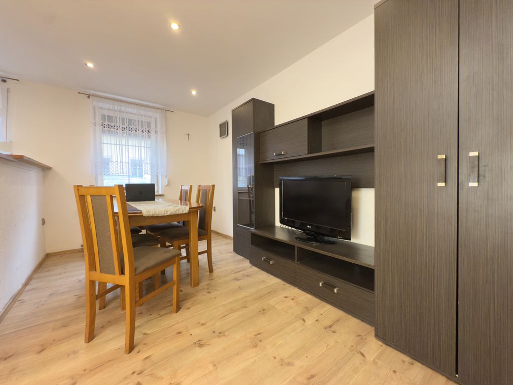 Budynek jest ocieplony, a samo mieszkanie częściowo umeblowane. Dodatkowo, mieszkanie znajduje się w ogrodzonej posesji, co zapewnia spokój i prywatność. Parkowanie auta nie sprawia żadnych trudności, a na posesji znajduje się również garaż oraz pomieszczenia gospodarcze.