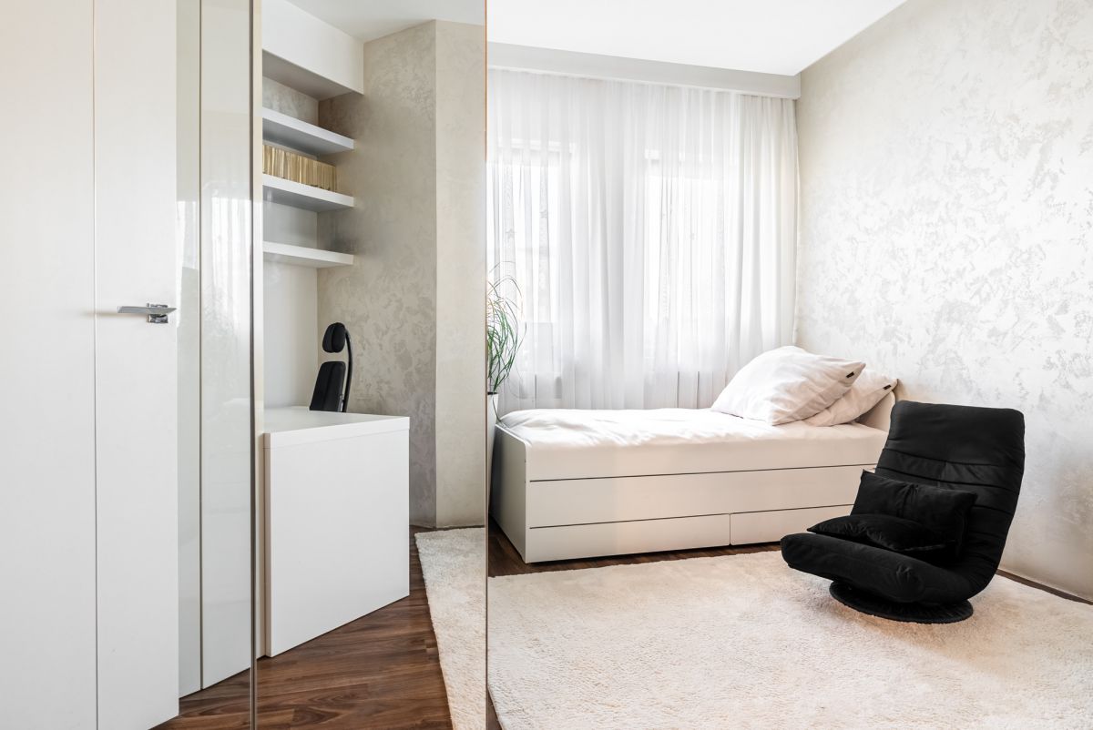 Oddzielny 14 metrowy pokój, który teraz pełni funkcję pokoju dziecięcego, wcześniej był sypialnią rodziców z wydzielona garderobą. Możliwości aranżacyjnych jest wiele, tym bardziej że znajduje się tam spora szafa w zabudowie.
