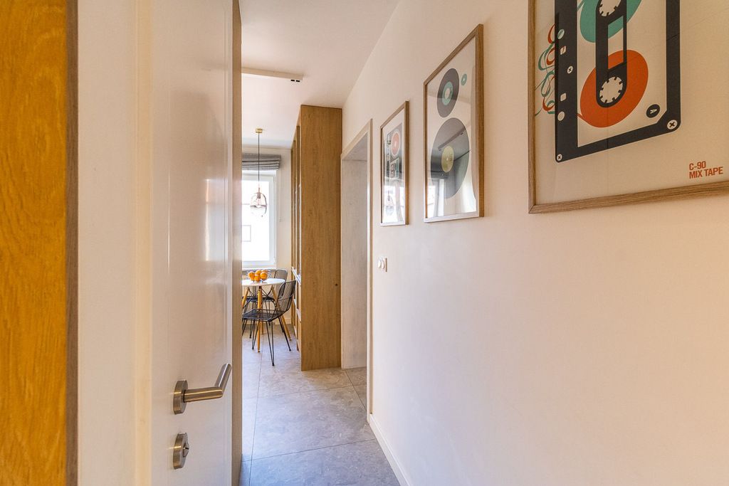 - Korytarz 6,4 m², zabudowana szafa z miejscem na pralkę i suszarkę,