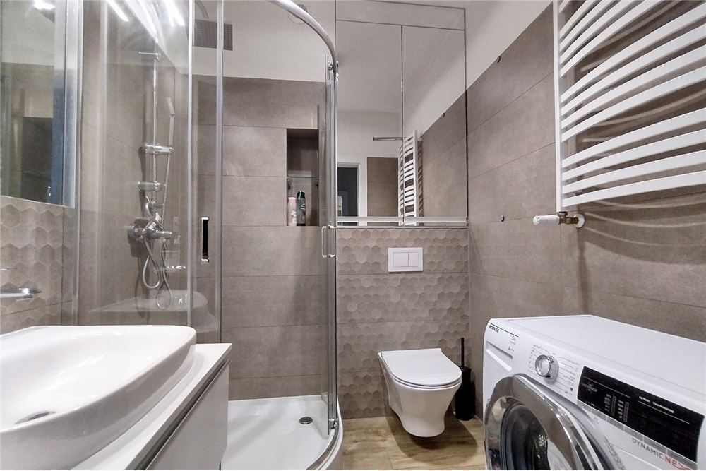 Wnętrze zostało wykończone w wysokim standardzie, z nowymi instalacjami oraz terakotą na podłogach. Aneks kuchenny jest w pełni wyposażony w meble w zabudowie, lodówkę, zmywarkę, piekarnik, mikrofalówkę oraz płytę indukcyjną. W łazience znajduje się prysznic, umywalka, WC oraz grzejnik drabinkowy.