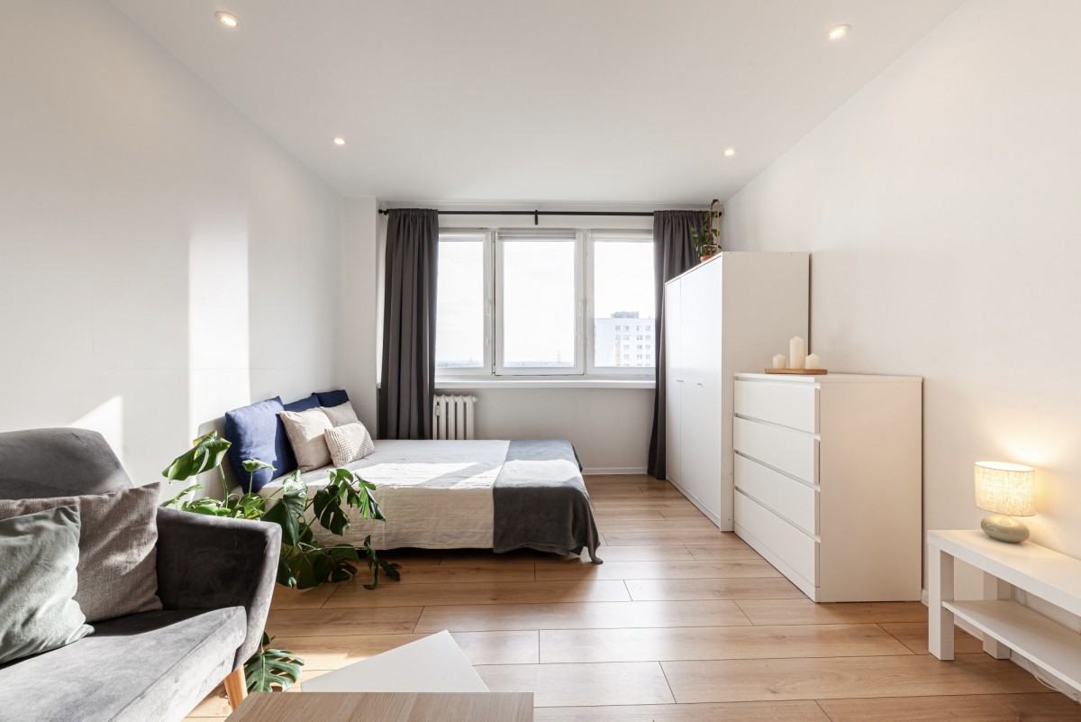 Kawalerka jest w pełni umeblowana i jest gotowa do natychmiastowego zamieszkania.