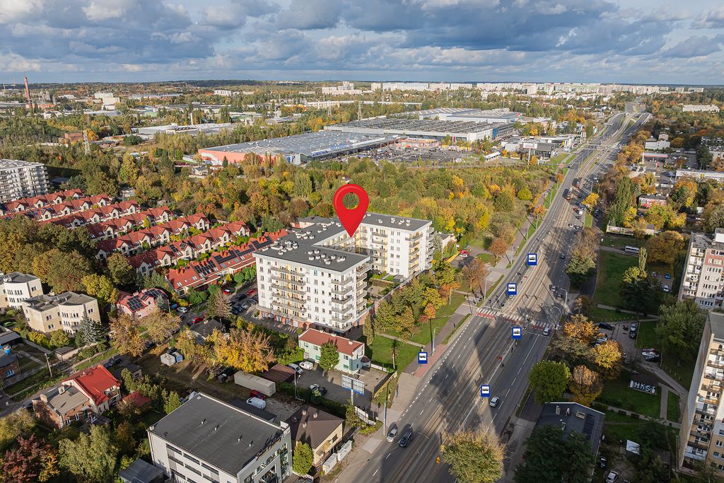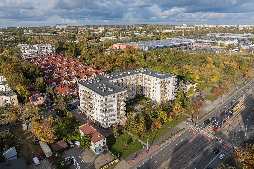 świetna lokalizacja komunikacyjna: za budynkiem znajduje się przystanek tramwajowy i autobusowy — szybki i wygodny dojazd do wielu części Łodzi