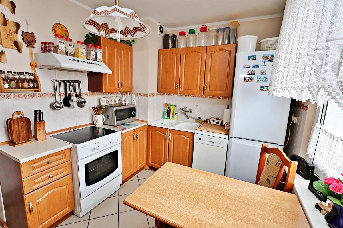 Mieszkanie do odświeżenia . Na podłogach w pokojach oraz przedpokoju panele , w kuchni glazura ,zabudowa kuchenna, kuchenka z indukcją, zmywarka Okna PCV . W łazience wanna , umywalka oddzielnie Wc. Do mieszkania przynależy piwnica. Klatka schodowa czysta i schludna . W cenie mieszkania zostają zabudowy stałe kuchenne sprzęt agd ( lodówka, zmywarka, kuchenka ) .