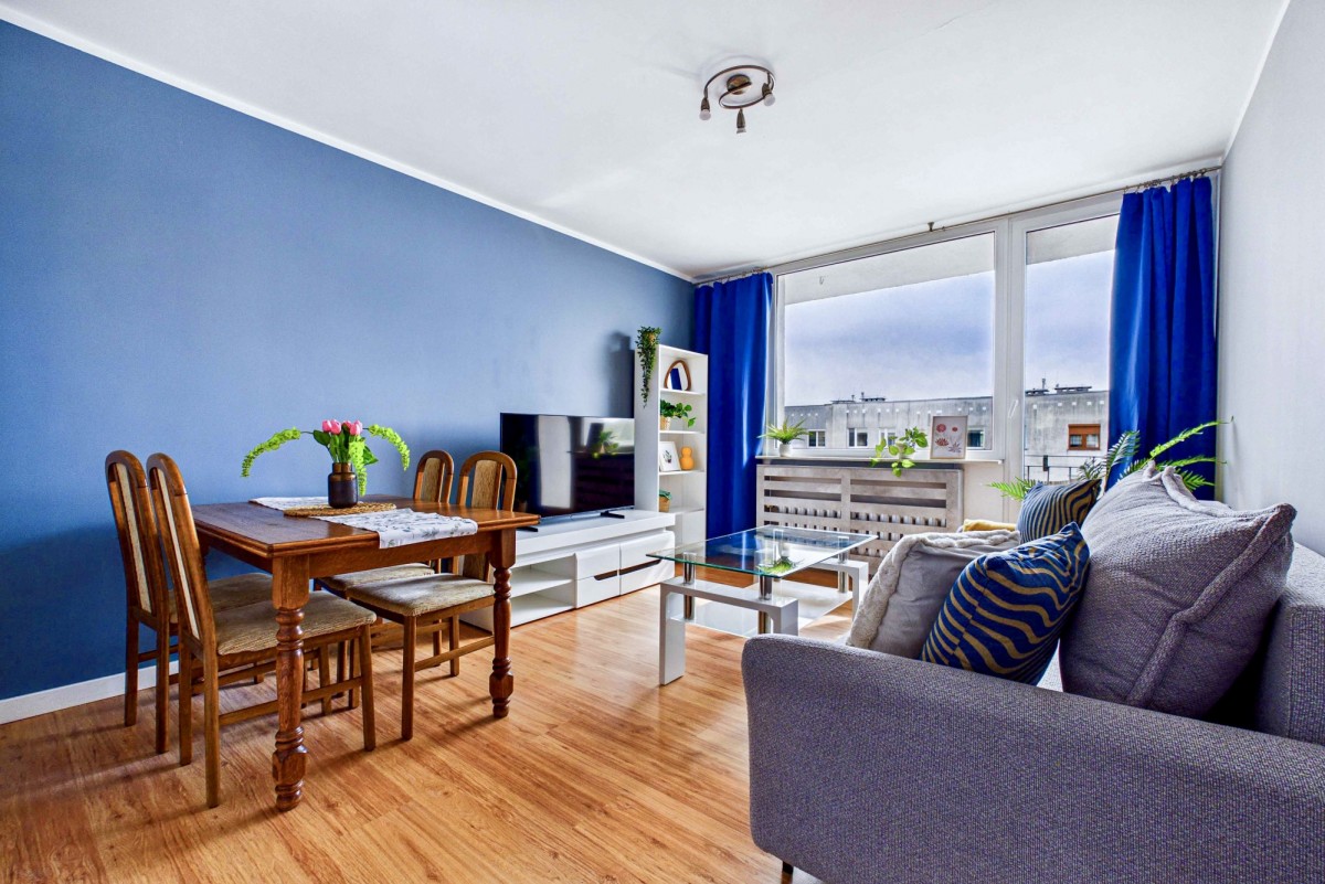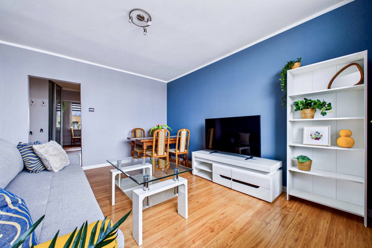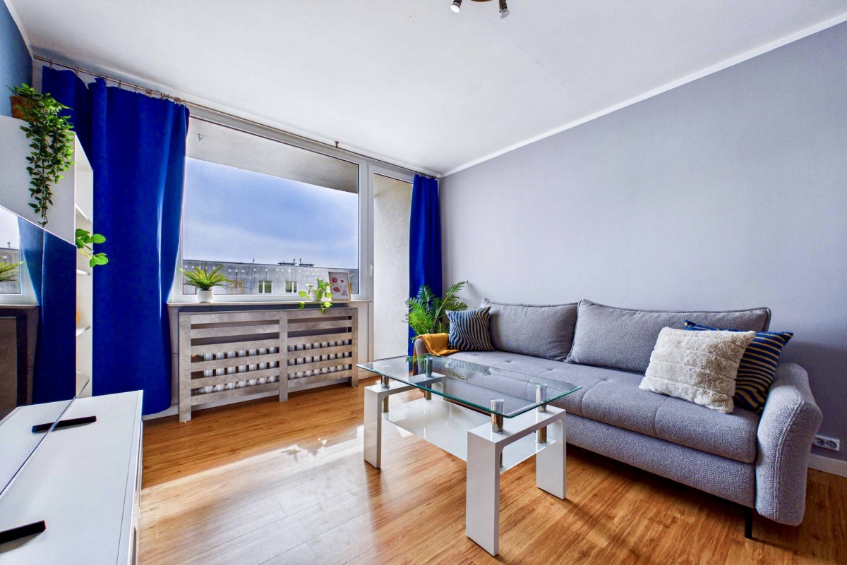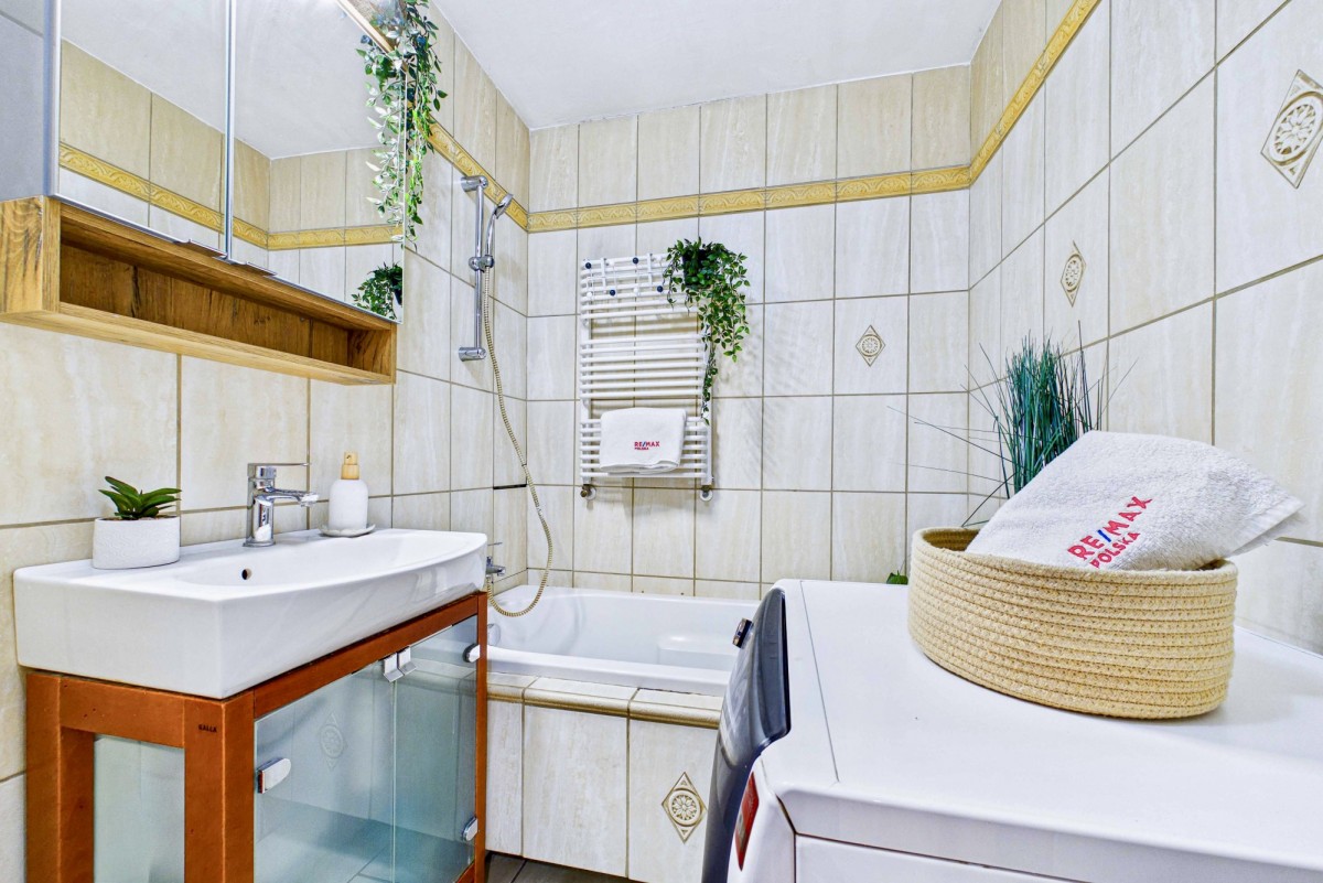 Jasny, słoneczny salon to idealna przestrzeń do codziennego relaksu, a przestronny balkon sprzyja odpoczynkowi w ciepłe, letnie dni. Nieruchomość sprzedawana jest z niemal pełnym wyposażeniem oraz umeblowaniem, co znacząco ułatwia szybkie wprowadzenie się. Kuchnia została wyposażona w niezbędny sprzęt AGD (kuchenka, lodówka, zmywarka), natomiast w łazience znajduje się praktyczna pralko-suszarka.