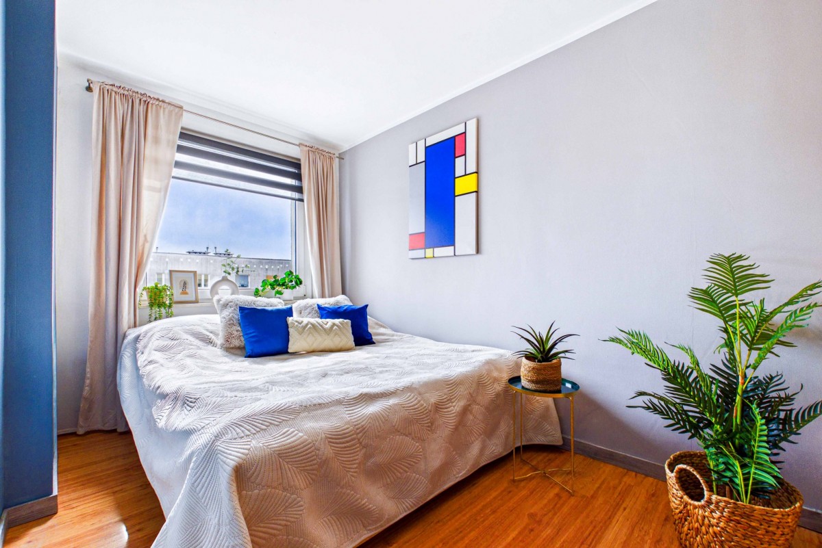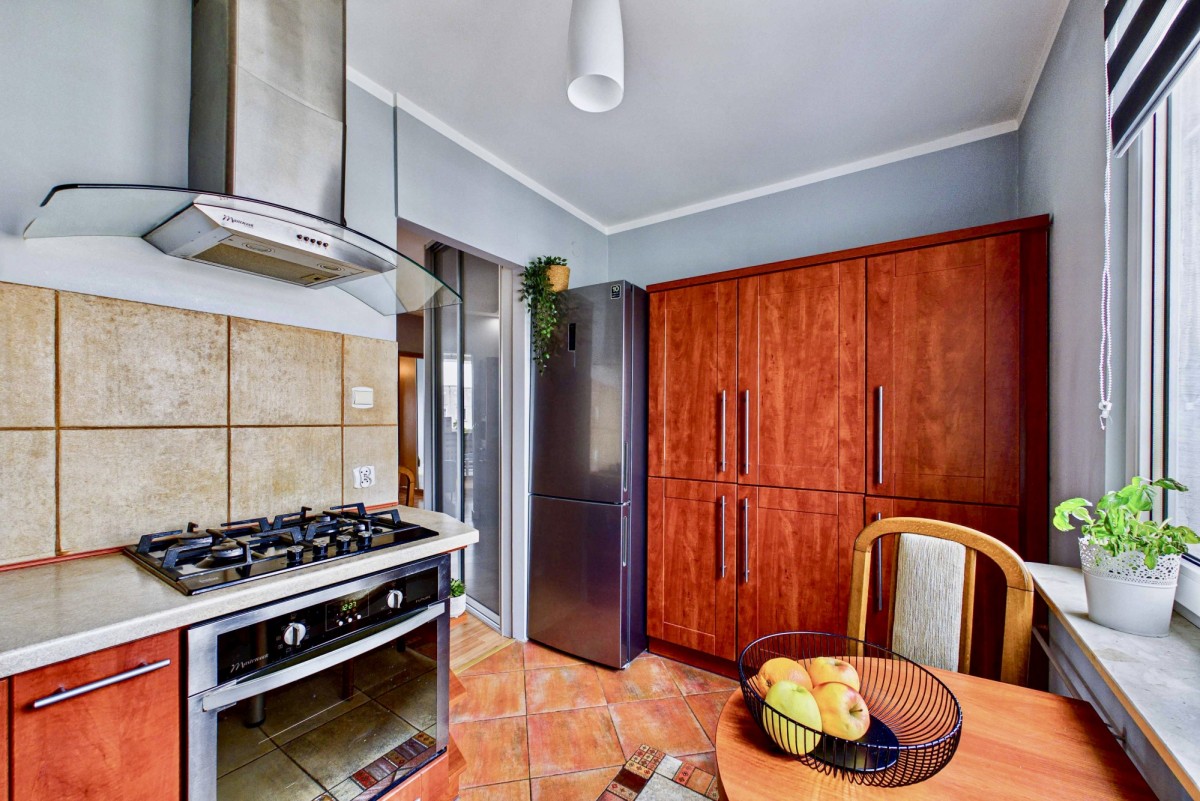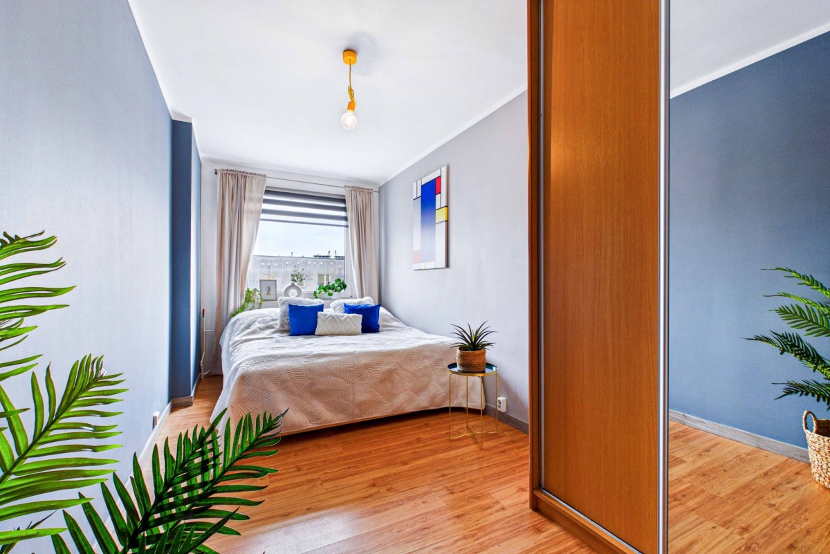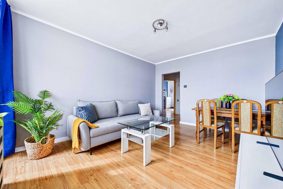 Jasny, słoneczny salon to idealna przestrzeń do codziennego relaksu, a przestronny balkon sprzyja odpoczynkowi w ciepłe, letnie dni. Nieruchomość sprzedawana jest z niemal pełnym wyposażeniem oraz umeblowaniem, co znacząco ułatwia szybkie wprowadzenie się. Kuchnia została wyposażona w niezbędny sprzęt AGD (kuchenka, lodówka, zmywarka), natomiast w łazience znajduje się praktyczna pralko-suszarka.