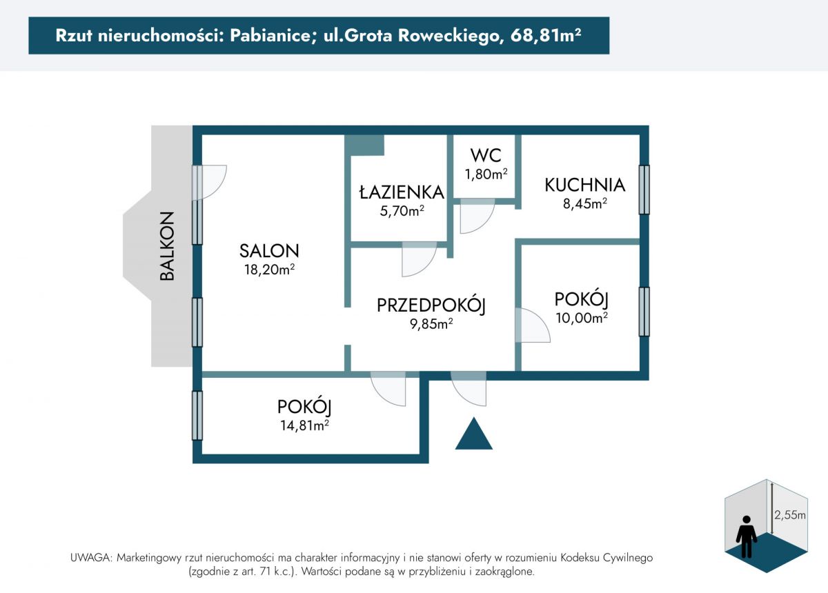 Oferuje na sprzedaż wyjątkowe, trzypokojowe mieszkanie o powierzchni ok. 69 m², zlokalizowane na czwartym piętrze w zadbanym budynku. To idealna propozycja dla osób ceniących przestrzeń, ciszę oraz wygodę życia w doskonale skomunikowanym punkcie Pabianic.