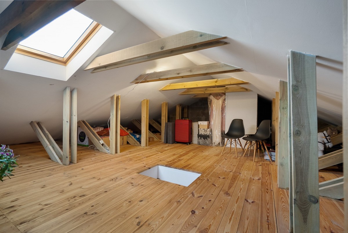 Poddasze jest ocieplone, posiada okno dachowe, a na podłodze znajduje się deska - po podłodze ma 60 m2