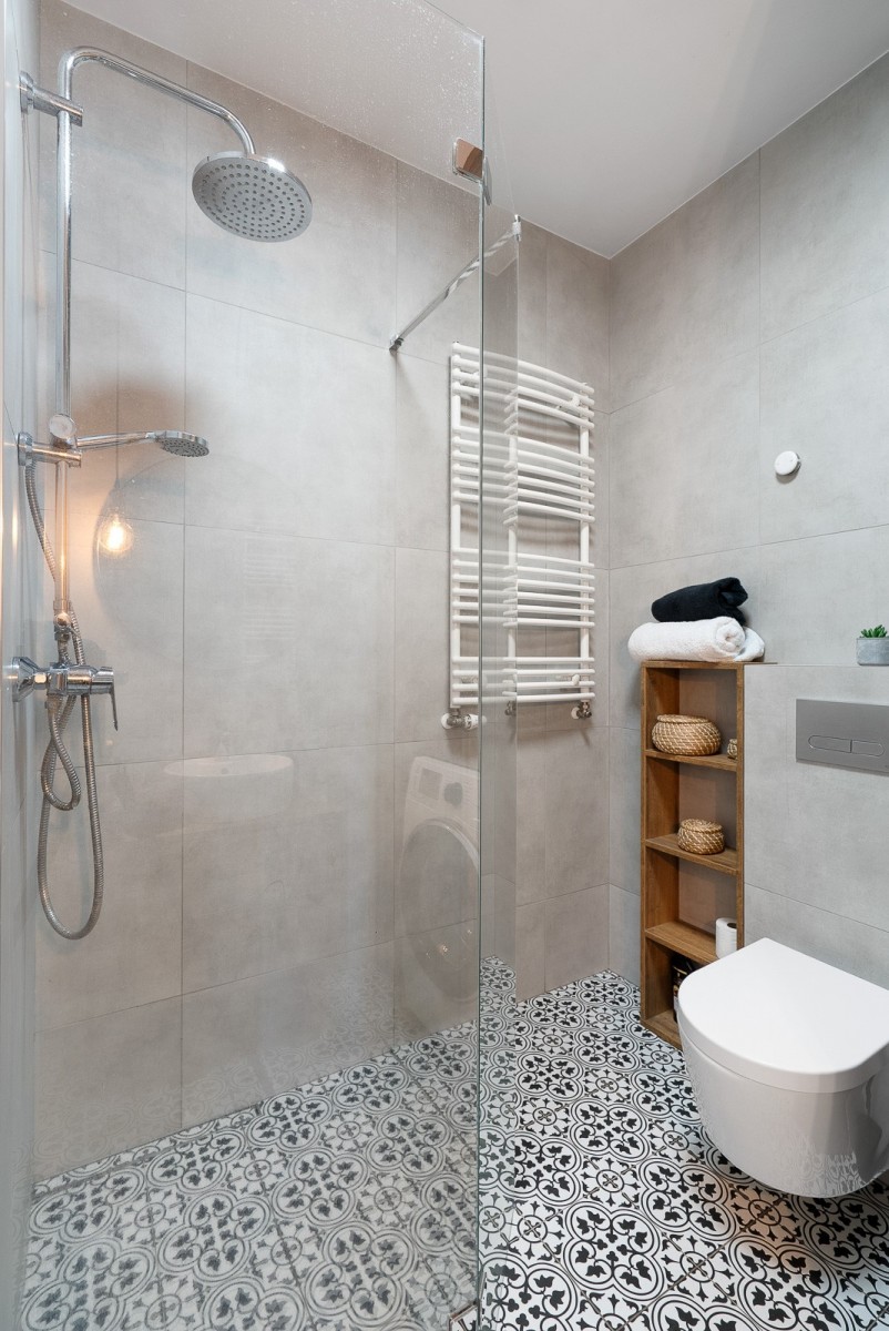 W mieszkaniu mamy zabudowę pod wymiar- meble kuchenne, szafy wnękowe.