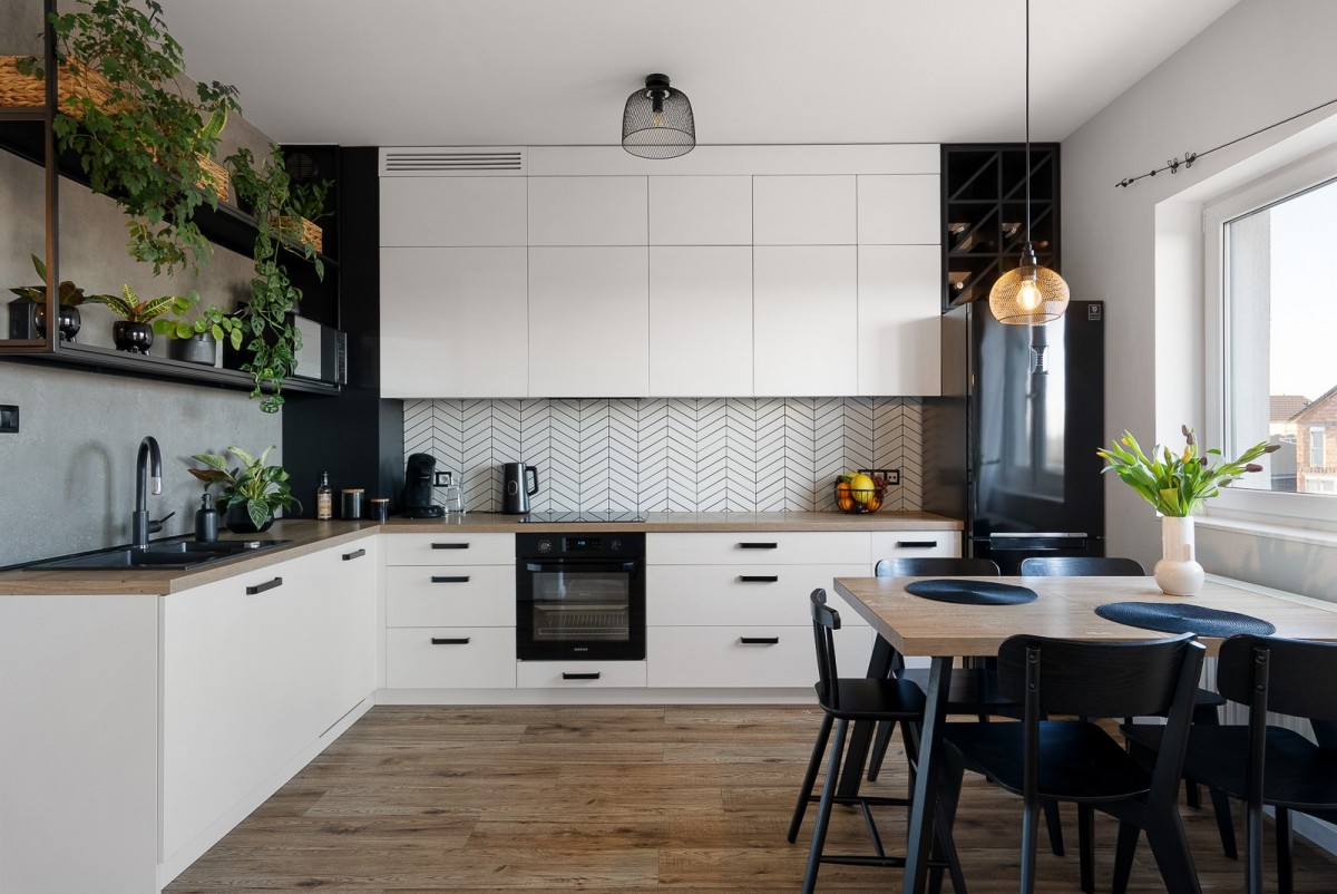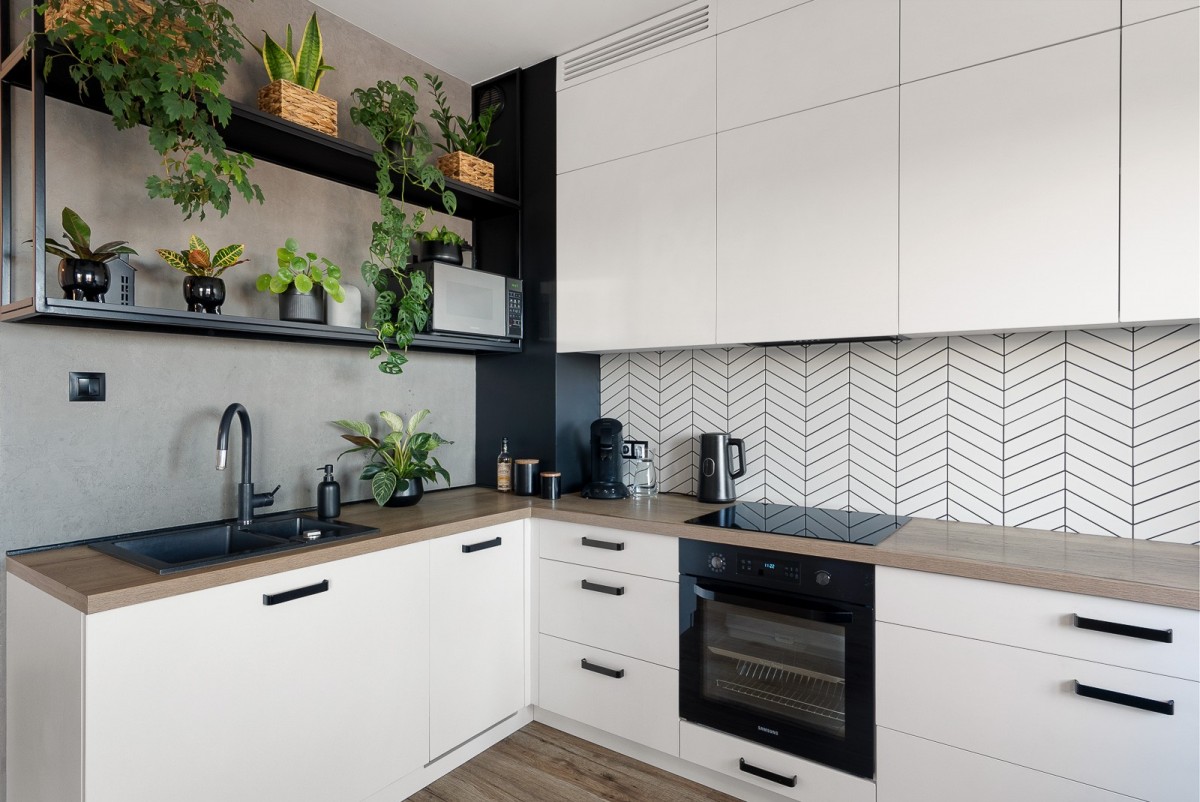 nowoczesna, funkcjonalna kuchnia połączona z dużym, zamykanym salonem- pow. 25 m2