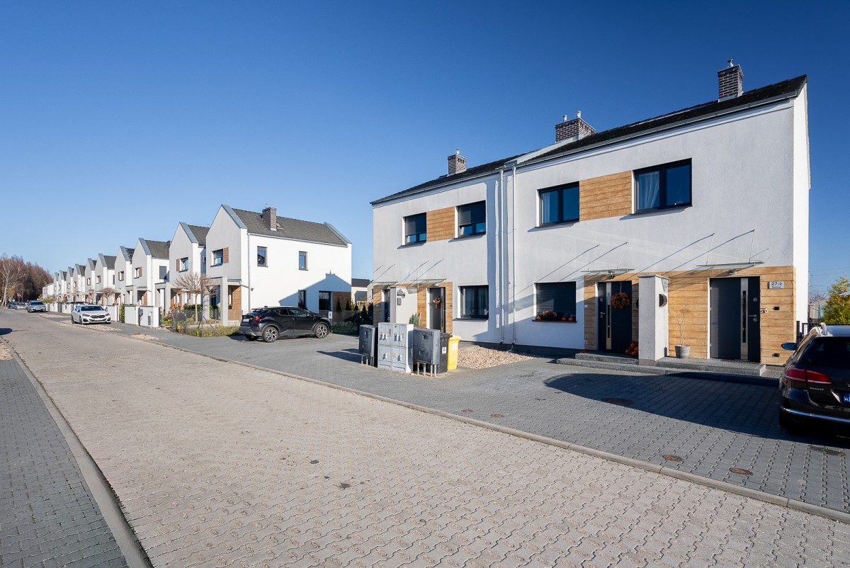 Do mieszkania przynależy ogród o powierzchni 302 m², który daje wiele możliwości aranżacyjnych - od miejsca zabaw dla dzieci po ogród warzywny czy strefę grillową. Przygotowano na nim miejsce pod taras, czy wiatę.