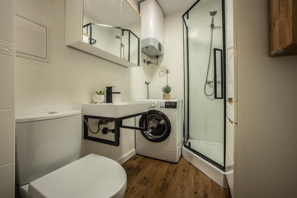- Łazienka z WC: Funkcjonalna przestrzeń, którą łatwo urządzić w nowoczesnym stylu.