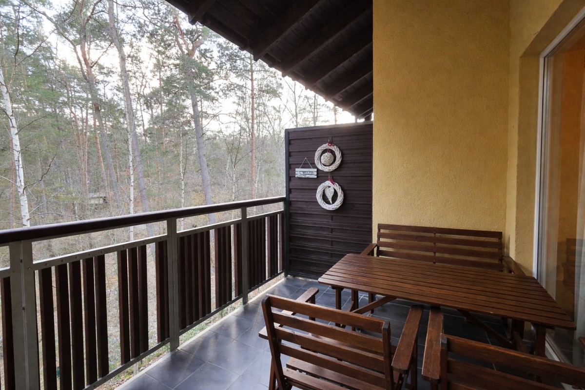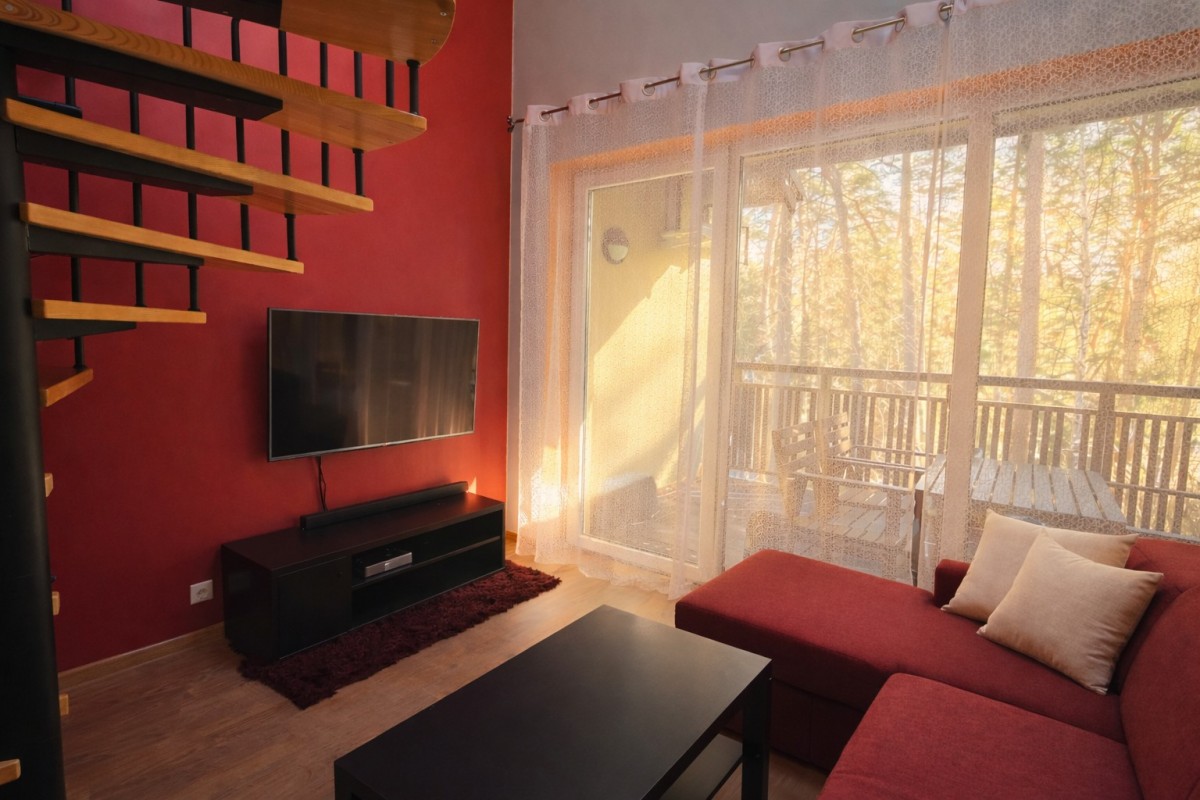 Na sprzedaż dwupoziomowy apartament wakacyjny położony w sercu sosnowego lasu.