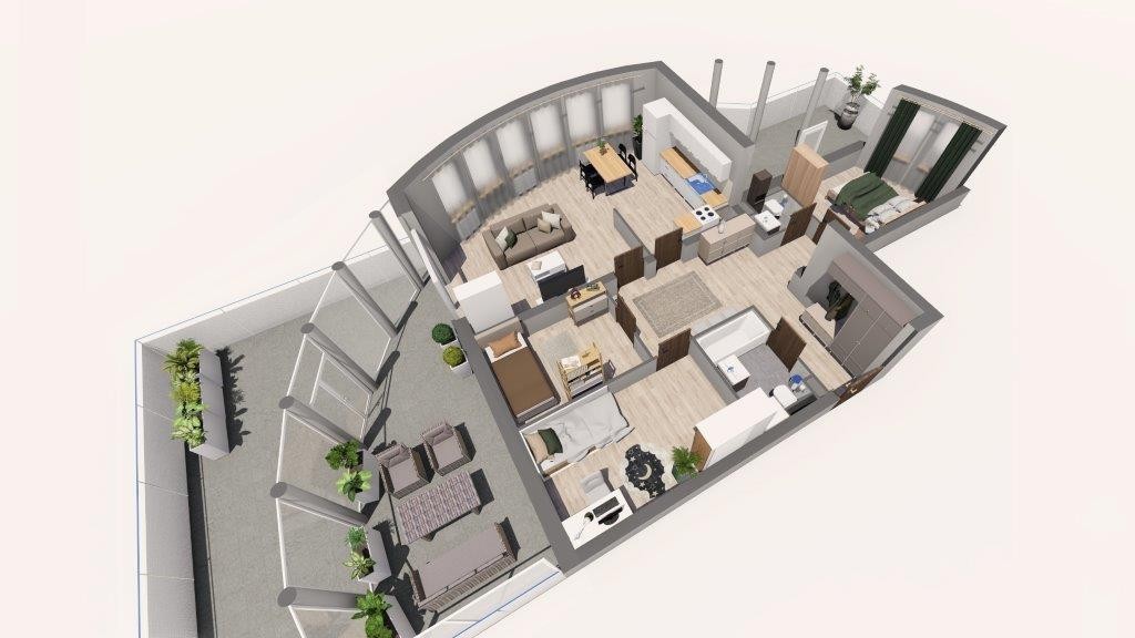 Istnieje możliwość zrobienia ogrodu zimowego na tarasach, zgodnie z wizualizacjami na zdjęciach.