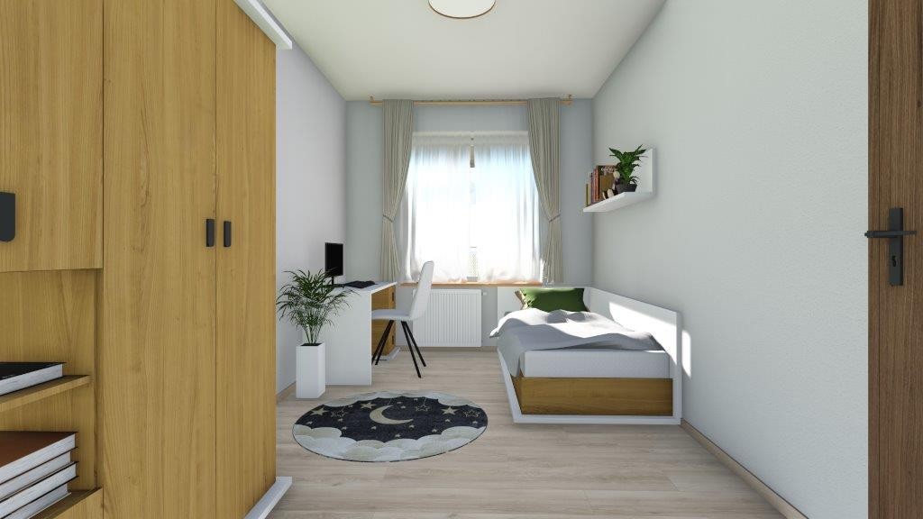 Mieszkanie o powierzchni 88,2 m2 składa się z 4 pokoi. Mieści się na wysokim parterze w 4-piętrowym budynku. Mieszkanie szczytowe na skraju bloku, co daje nam komfort braku znaczącej ilości sąsiadów za ścianą. Ekspozycja okien na 3 strony świata w połączeniu z bardzo dużą ilością okien, powoduje, że mieszkanie jest niesamowicie jasne. Dla komfortu właścicieli zostały zamontowane rolety zewnętrzne na każdym oknie.