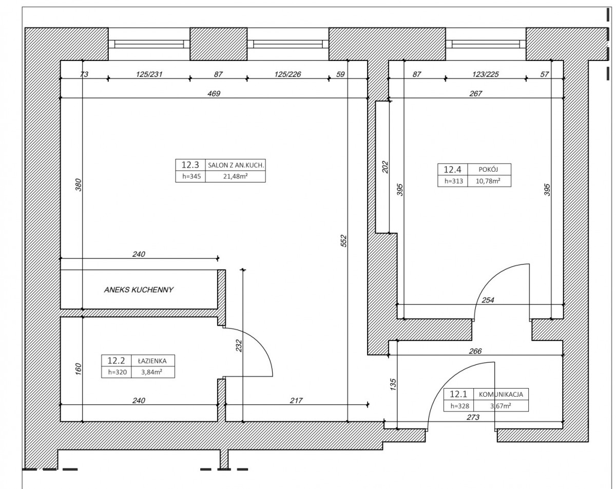 wysokość pomieszczeń: ok. 3,20 m