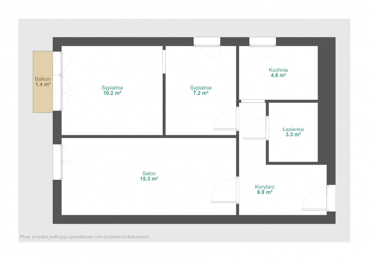 • oddzielnej jasnej kuchni z możliwością połączenia z pokojem - 4,8 m2;