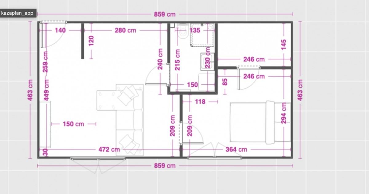 - salon z aneksem kuchennym,