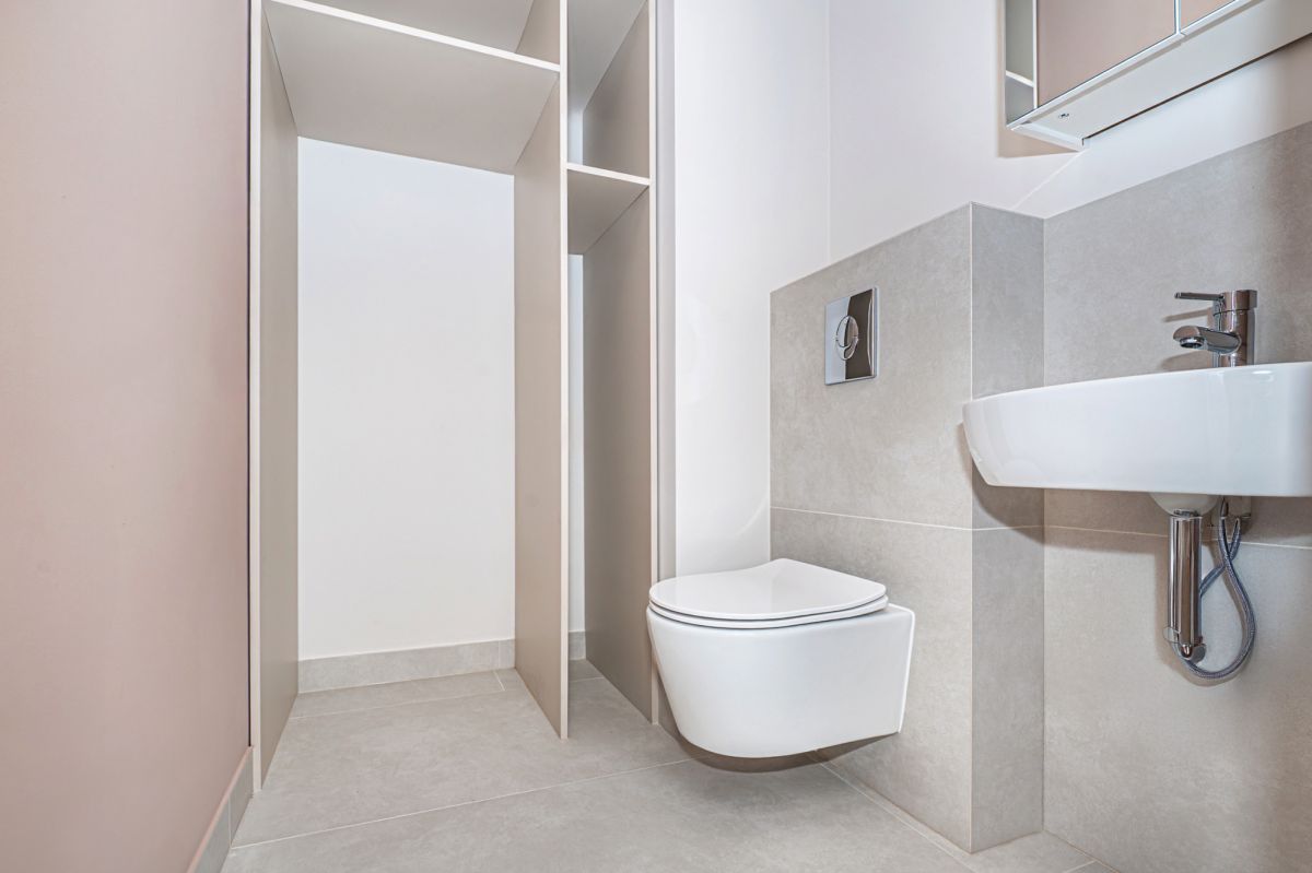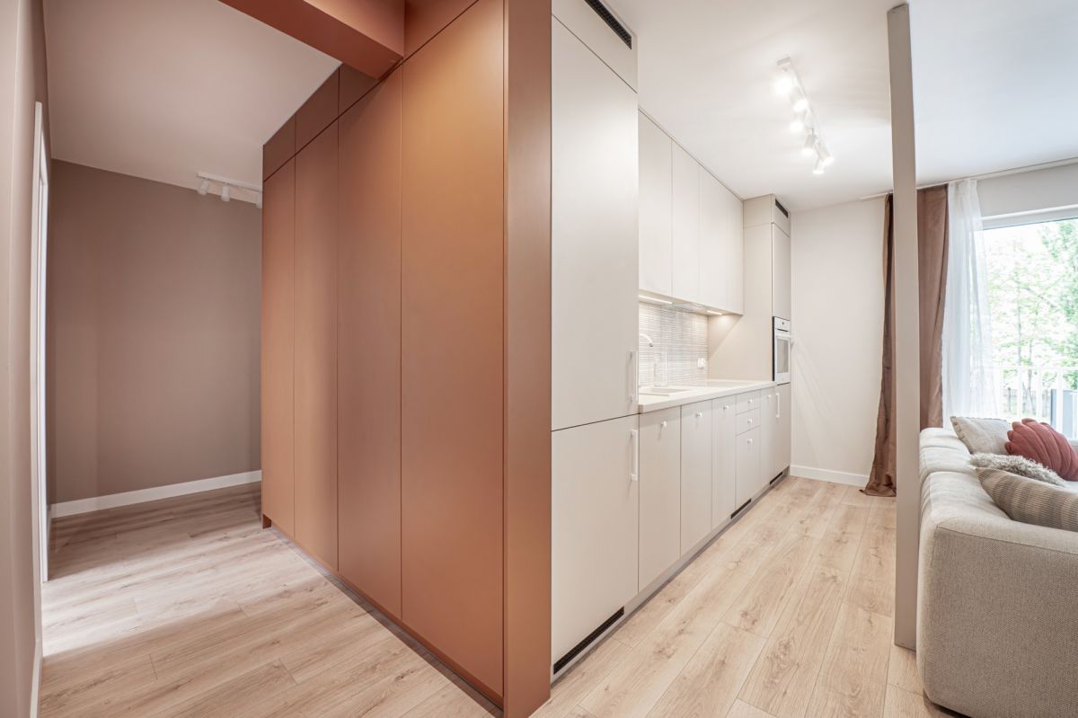 Na podłogach w pokojach panele o wysokim stopniu ścieralności, w łazience płytki. Wszystko tu kolorystycznie spójne i wykonane z najwyższą precyzją.