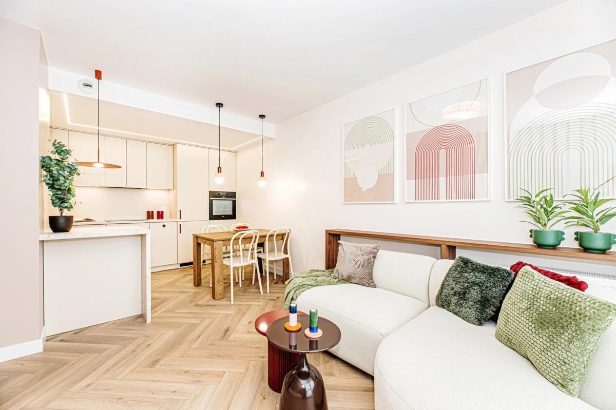 Mieszkanie zaprojektowane przez architekta wnętrz, wykończone z dbałością o każdy szczegół. Dobrze doświetlone, nowe okna PCV.