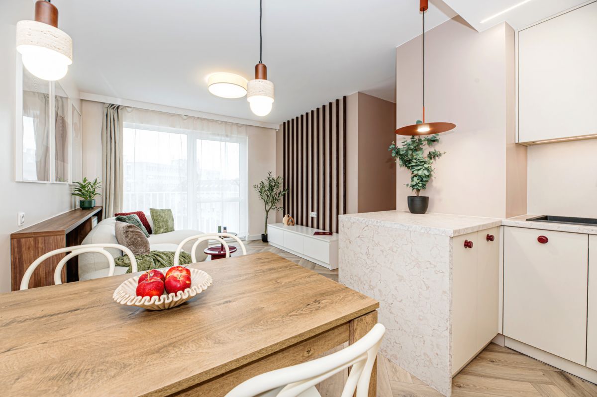 Mieszkanie zaprojektowane przez architekta wnętrz, wykończone z dbałością o każdy szczegół. Dobrze doświetlone, nowe okna PCV.