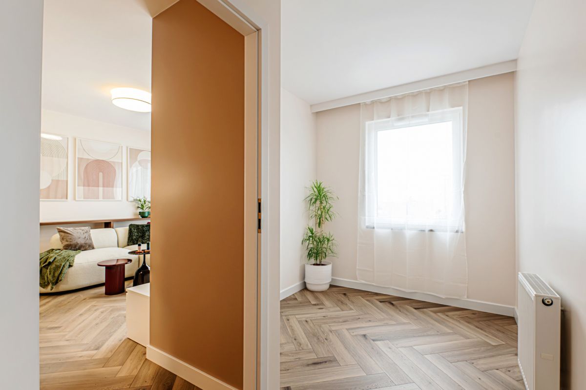 Na podłogach w pokojach panele o wysokim stopniu ścieralności, w łazience płytki. Wszystko tu kolorystycznie spójne i wykonane z najwyższą precyzją.