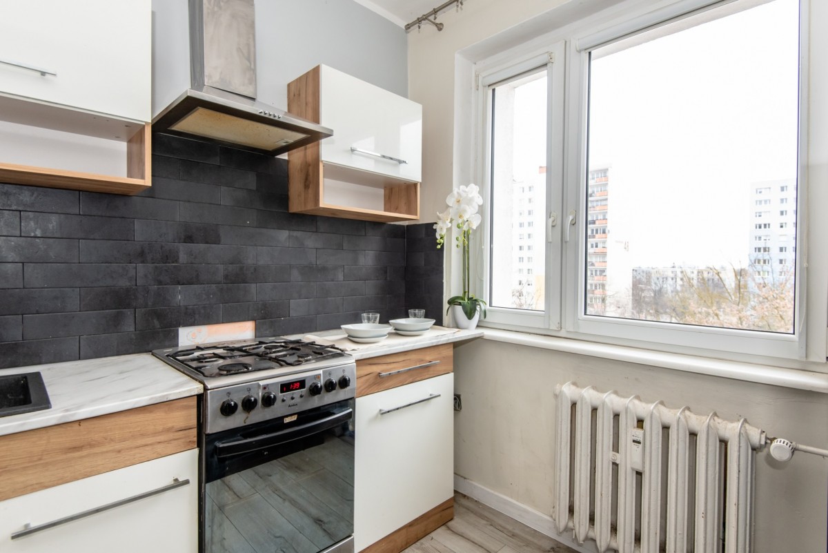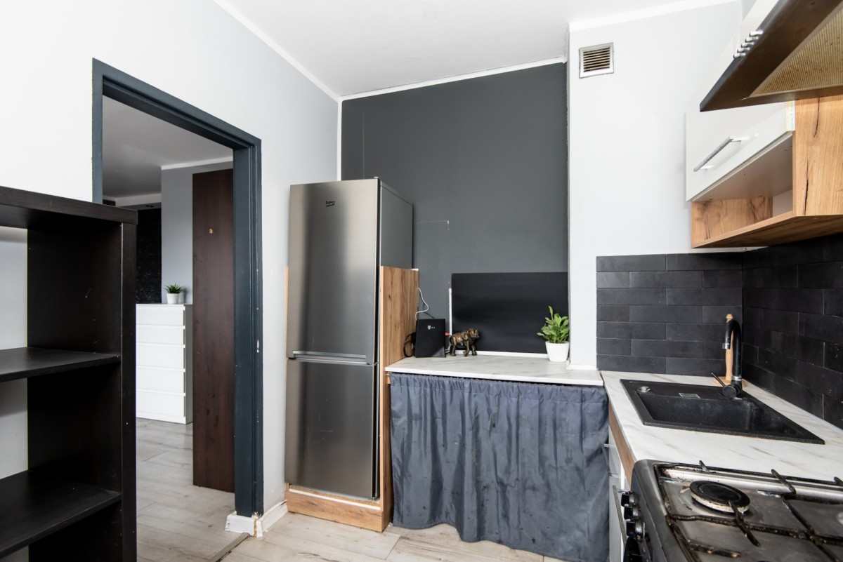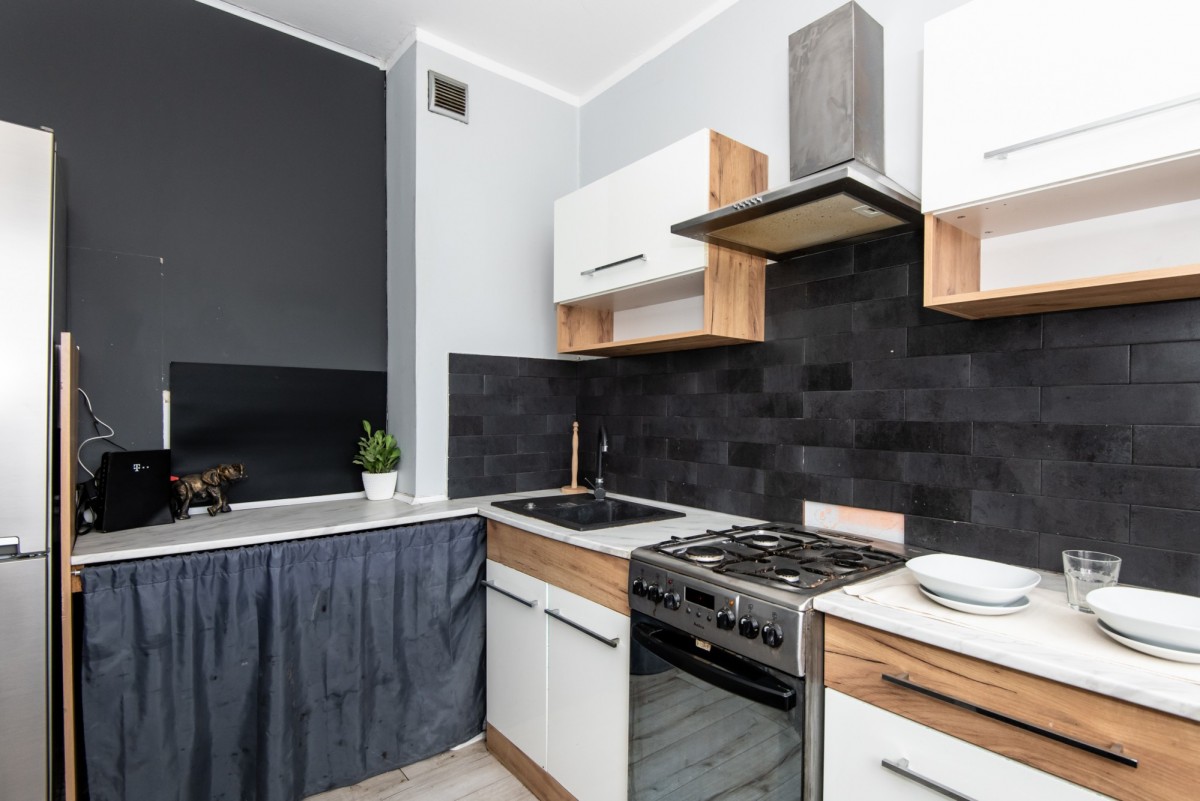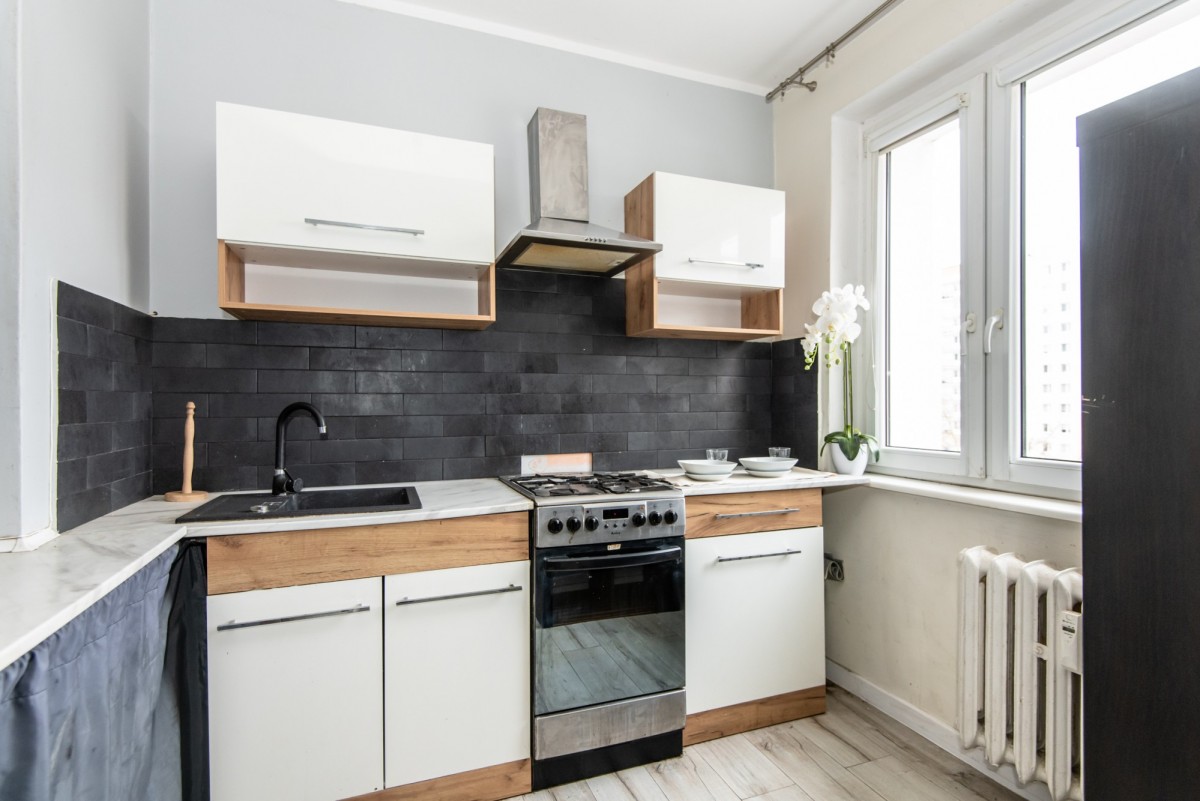 Układ mieszkania: duży pokój, kuchnia z oknem, łazienka z toaletą