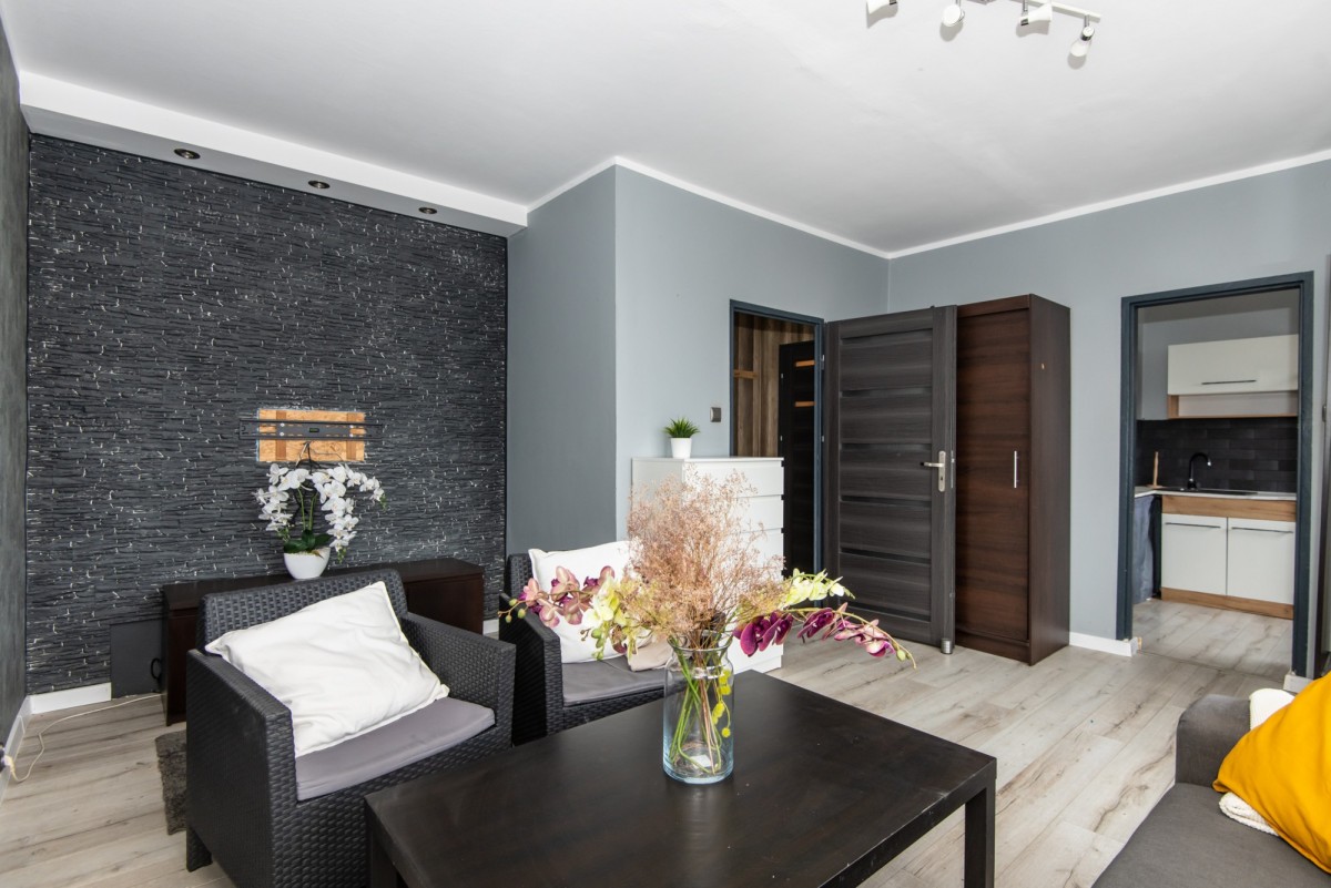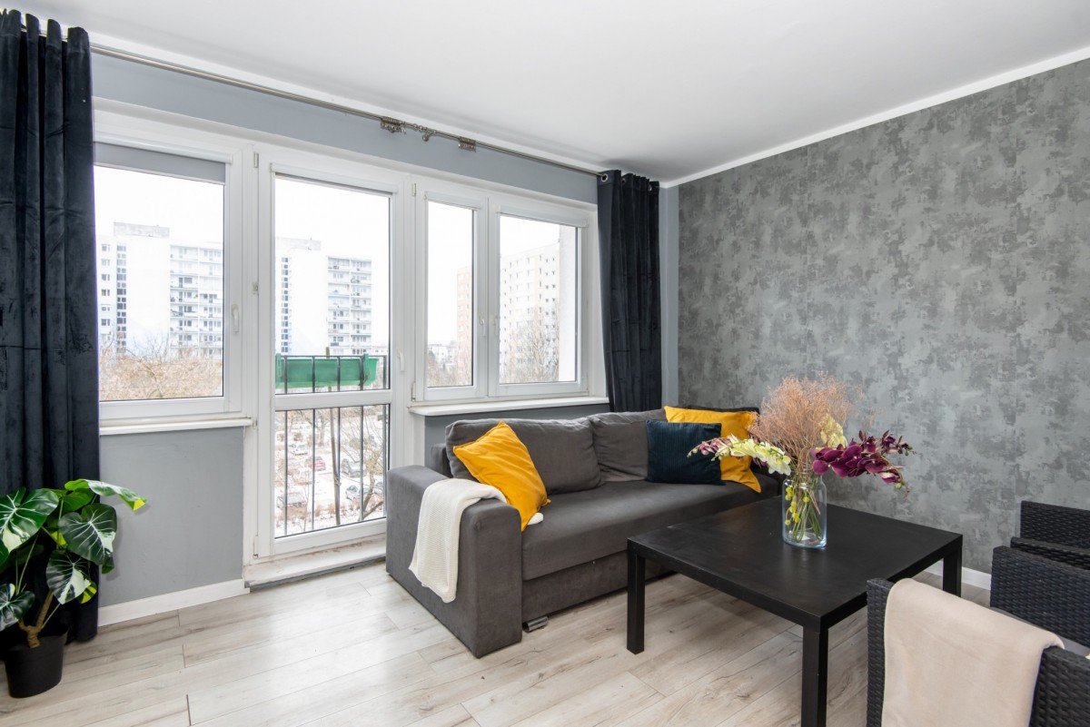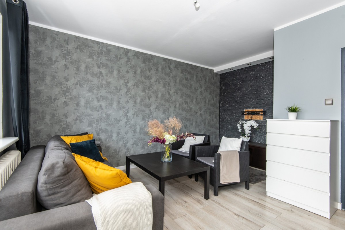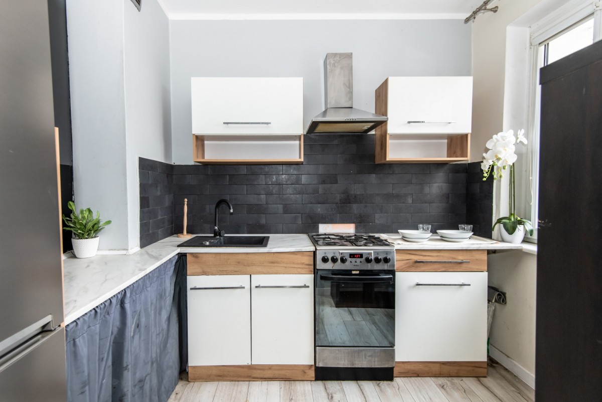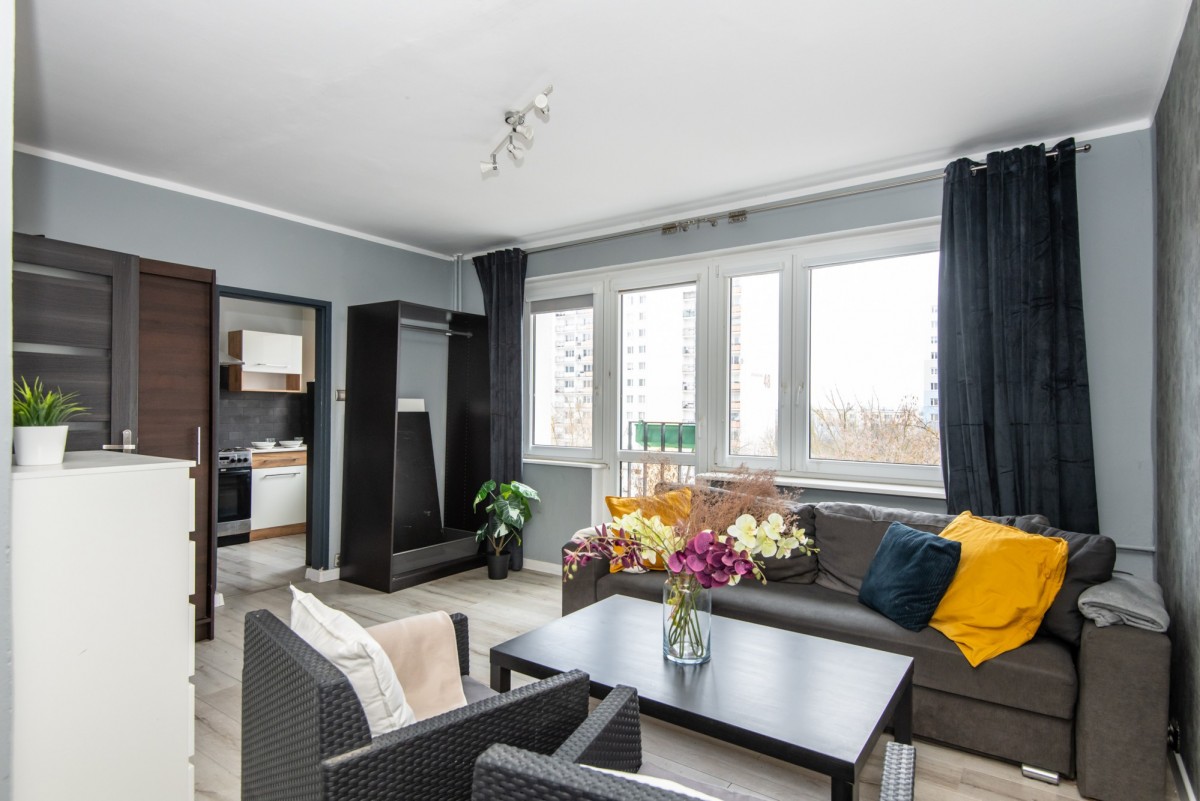 Układ mieszkania: duży pokój, kuchnia z oknem, łazienka z toaletą