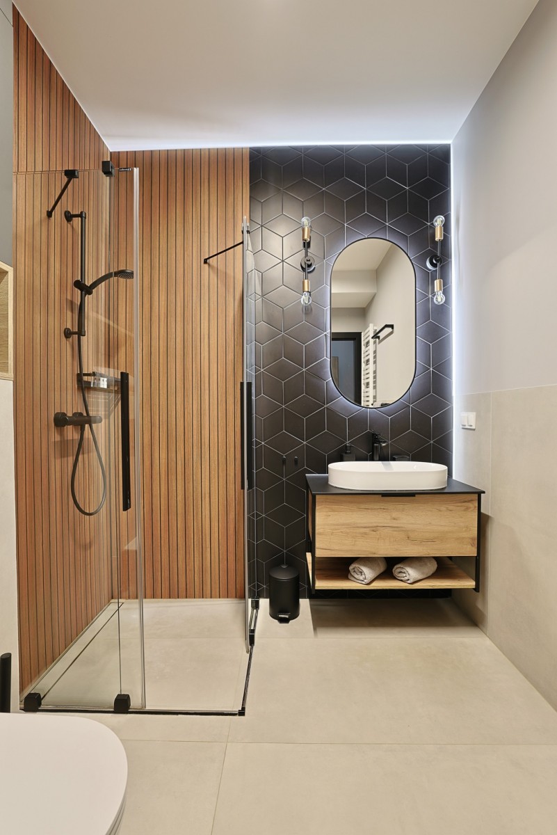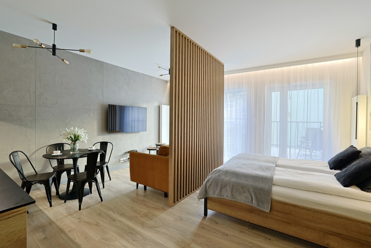 - 2 niezależne mieszkania (studio + 2-pokojowe) - każdy z osobnym wejściem, kuchnią i łazienką.