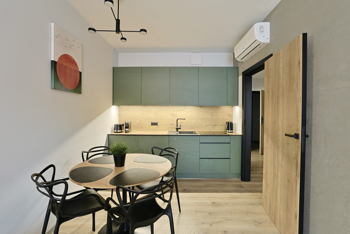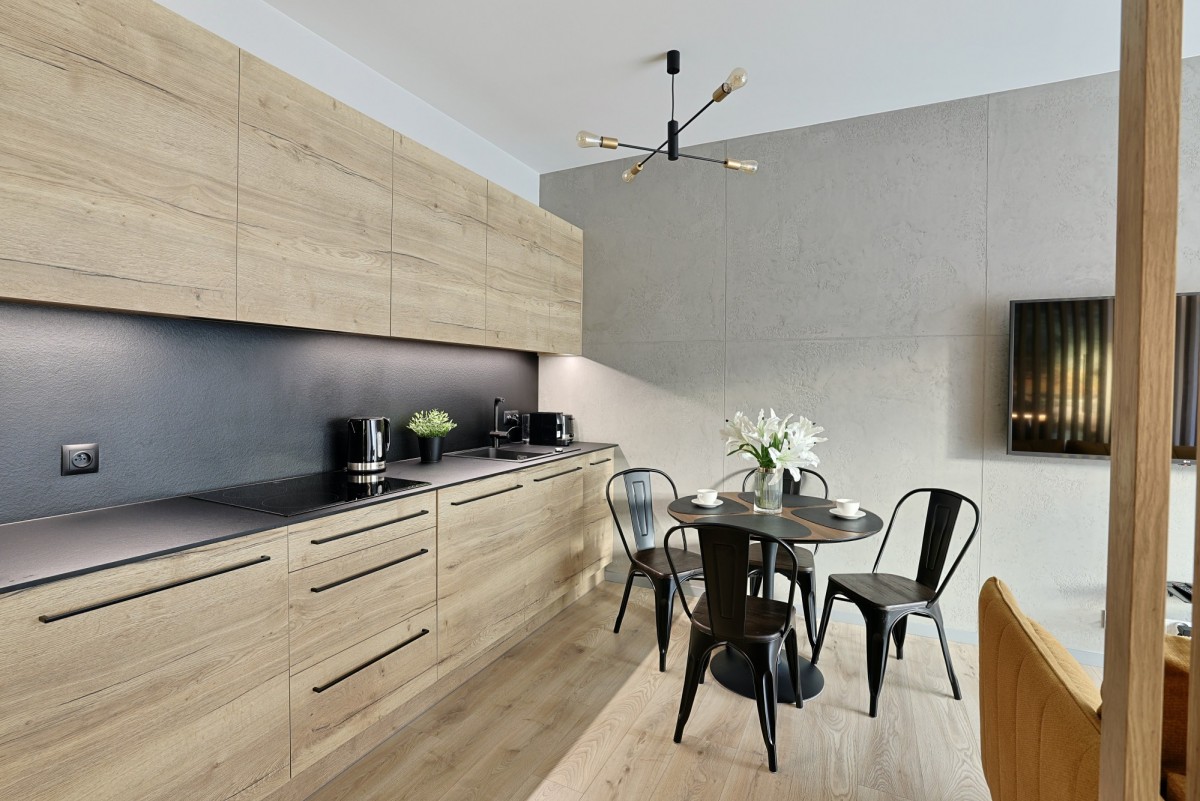 -Całkowicie wyposażone kuchnie: lodówka, płyta indukcyjna, zmywarka, okap, mikrofala, ekspres do kawy, czajnik, toster, naczynia.