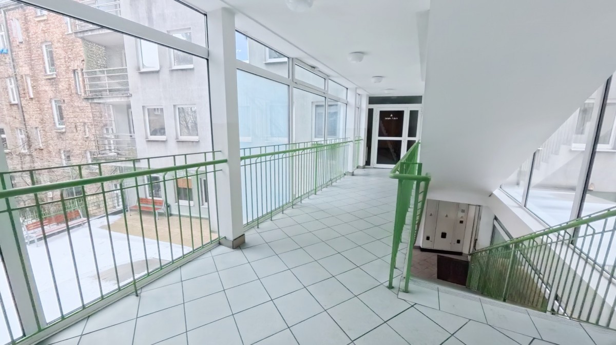 Części wspólne są szerokie, jasne i bardzo zadbane. Klatki schodowe utrzymane są w dobrym standardzie, regularnie sprzątane i estetyczne, co podkreśla dbałość wspólnoty o nieruchomość.