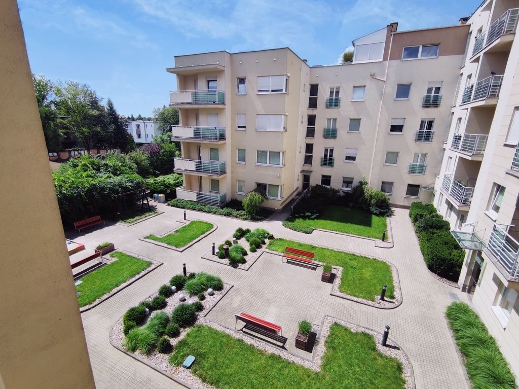 Wewnątrz osiedla jest zielone patio, gdzie można odpocząć na prywatnym skwerze.
