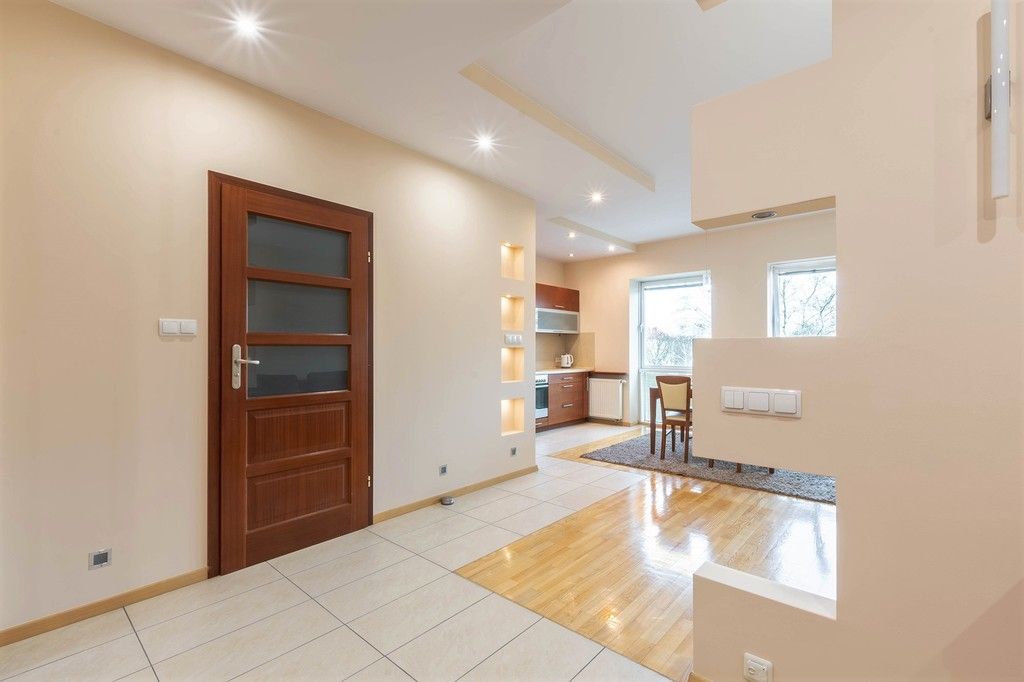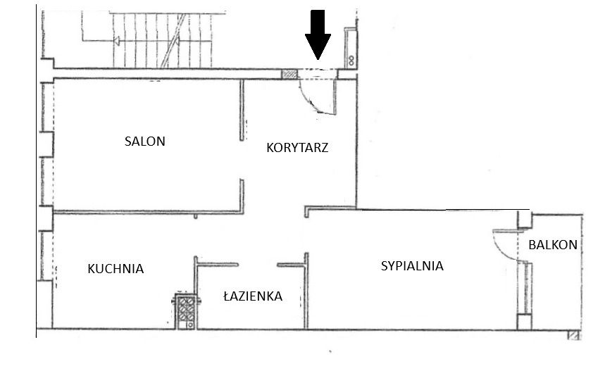 - duży salon z wydzieloną częścią wypoczynkową, kuchenną i jadalnią (pierwotnie osobna kuchnia z oknem i salon z 2 oknami, można łatwo przywrócić ten układ)