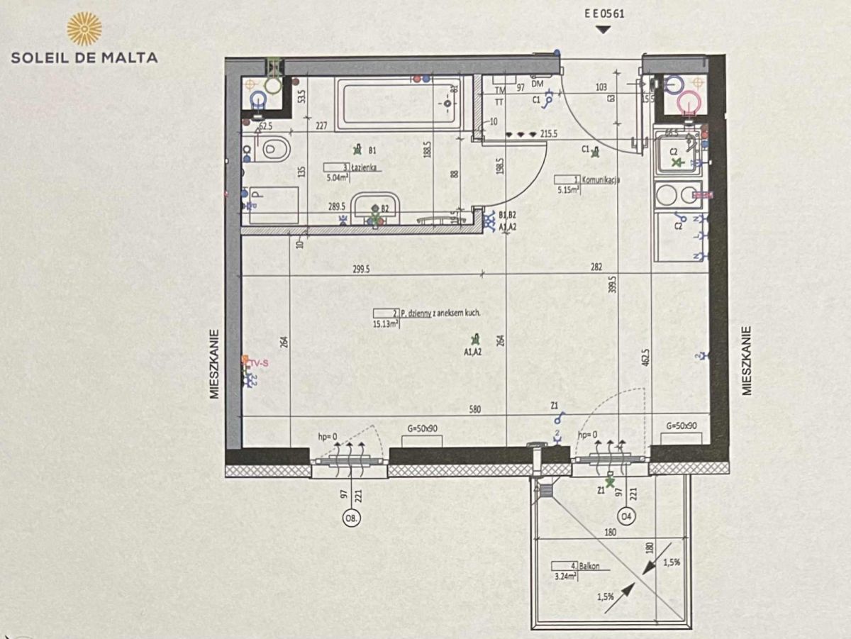 - łazienka - 5,04 m2,