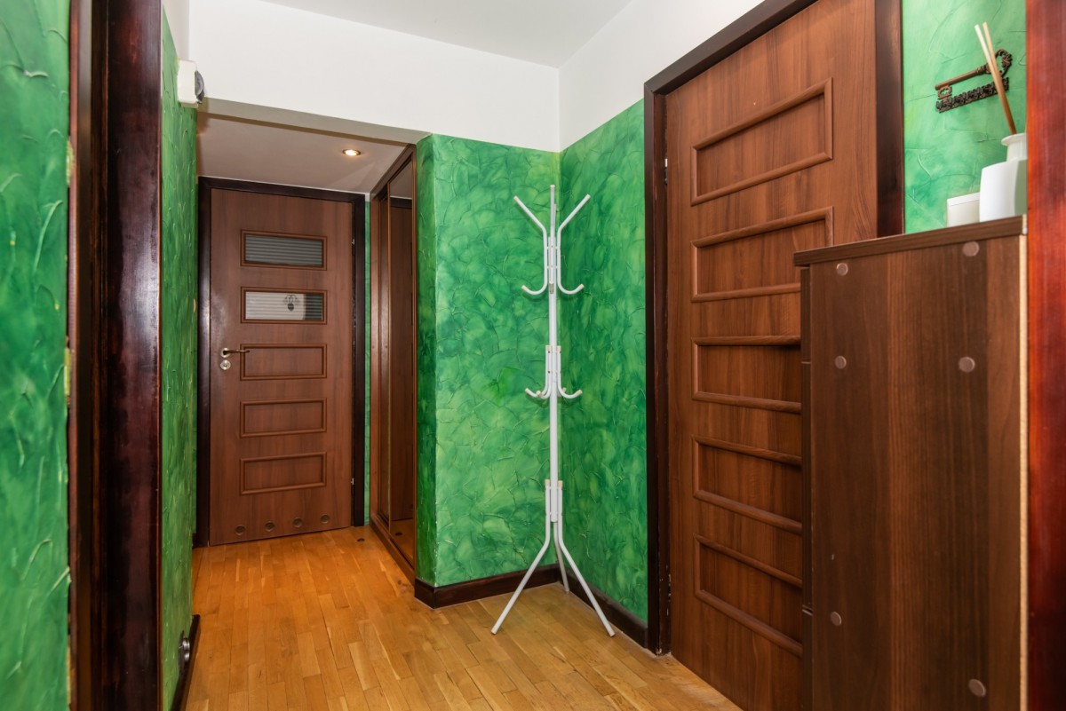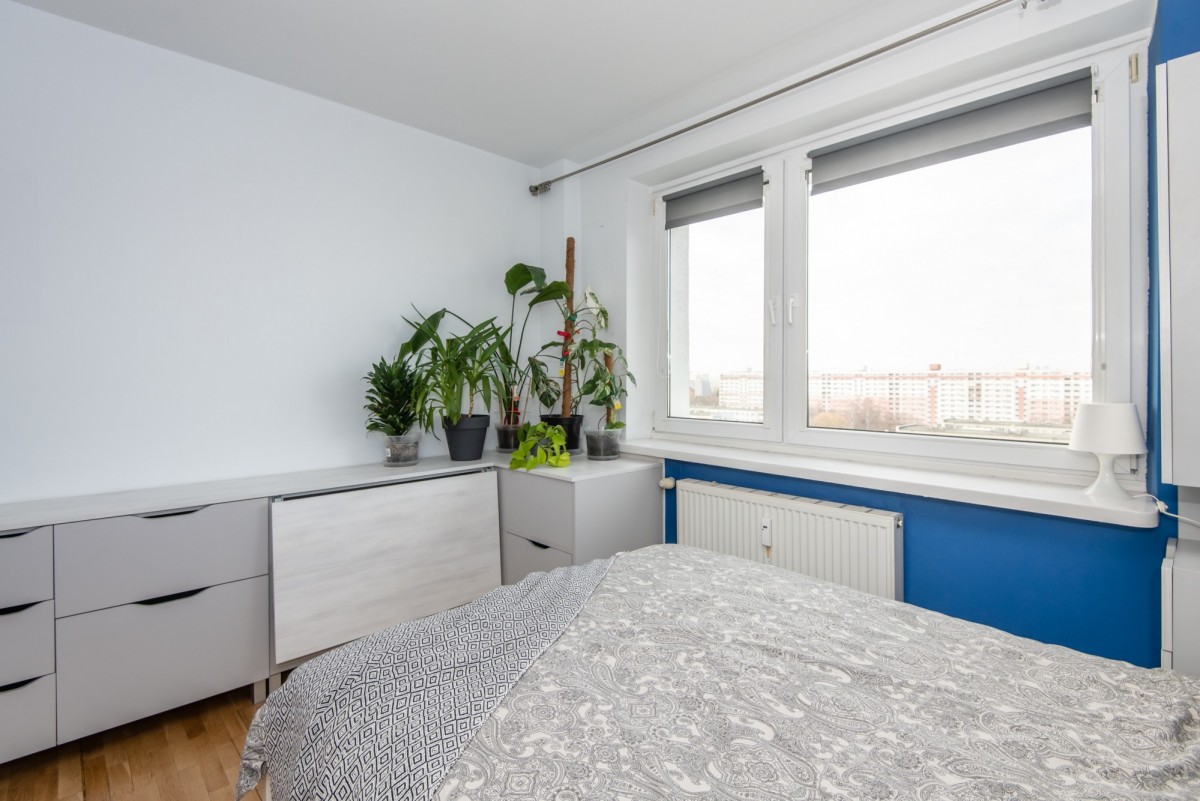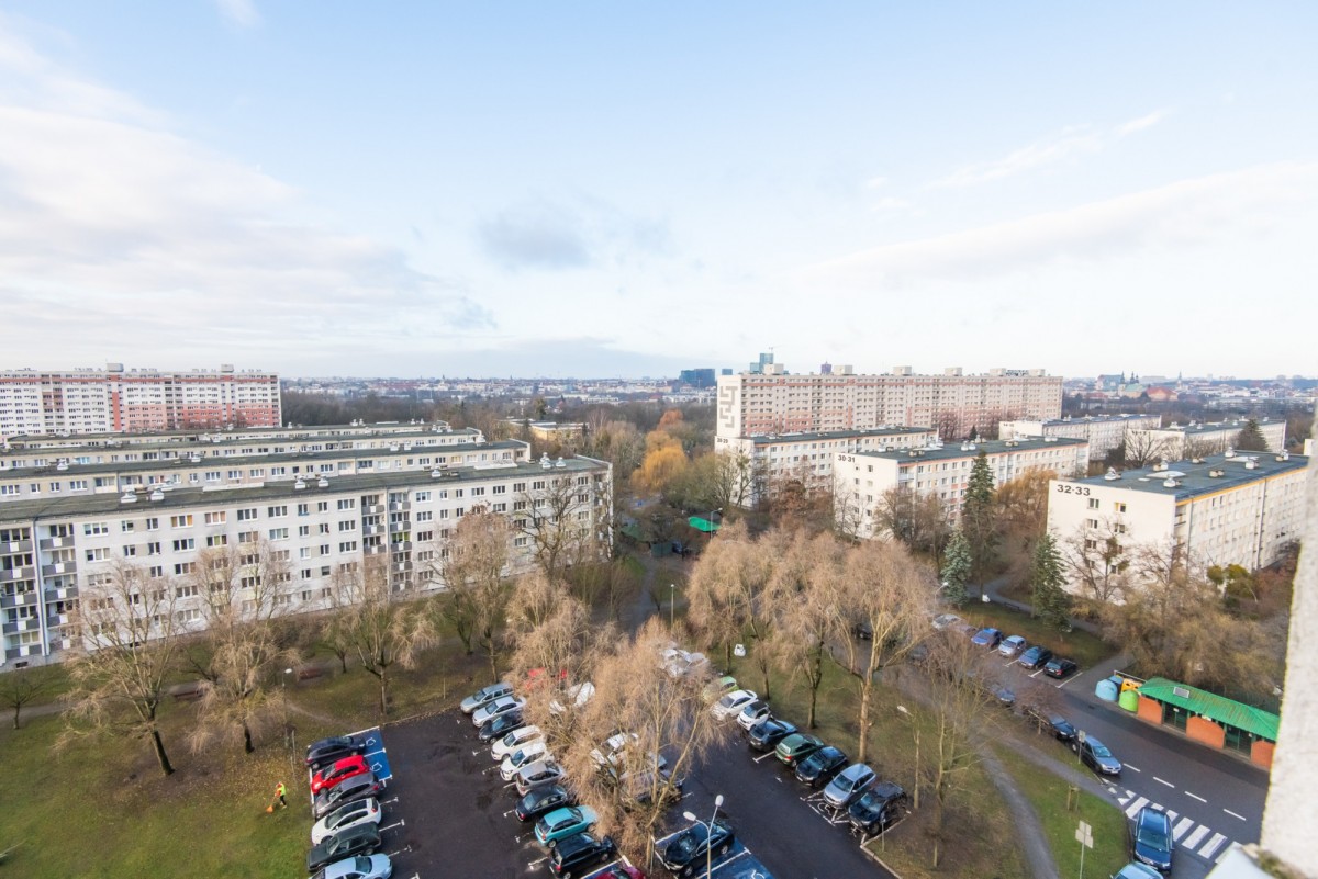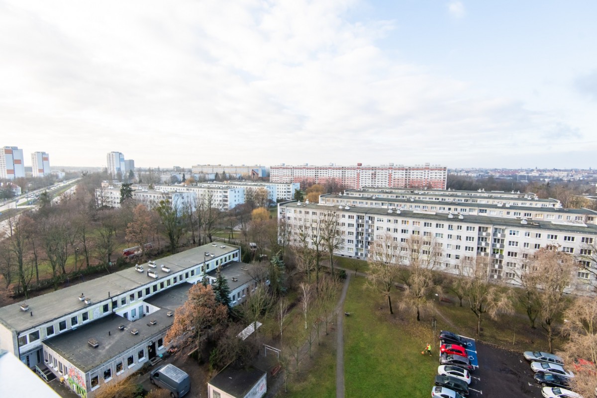 Mieszkanie znajduje się na 9. piętrze wysokiego bloku. Mimo centralnego położenia i bliskości głównych arterii komunikacyjnych, lokal usytuowany jest od strony spokojniejszej, od strony osiedla, co zapewnia ciszę i komfort codziennego życia. Z loggii rozpościera się przepiękny widok na panoramę całego miasta oraz wyjątkowe zachody słońca.