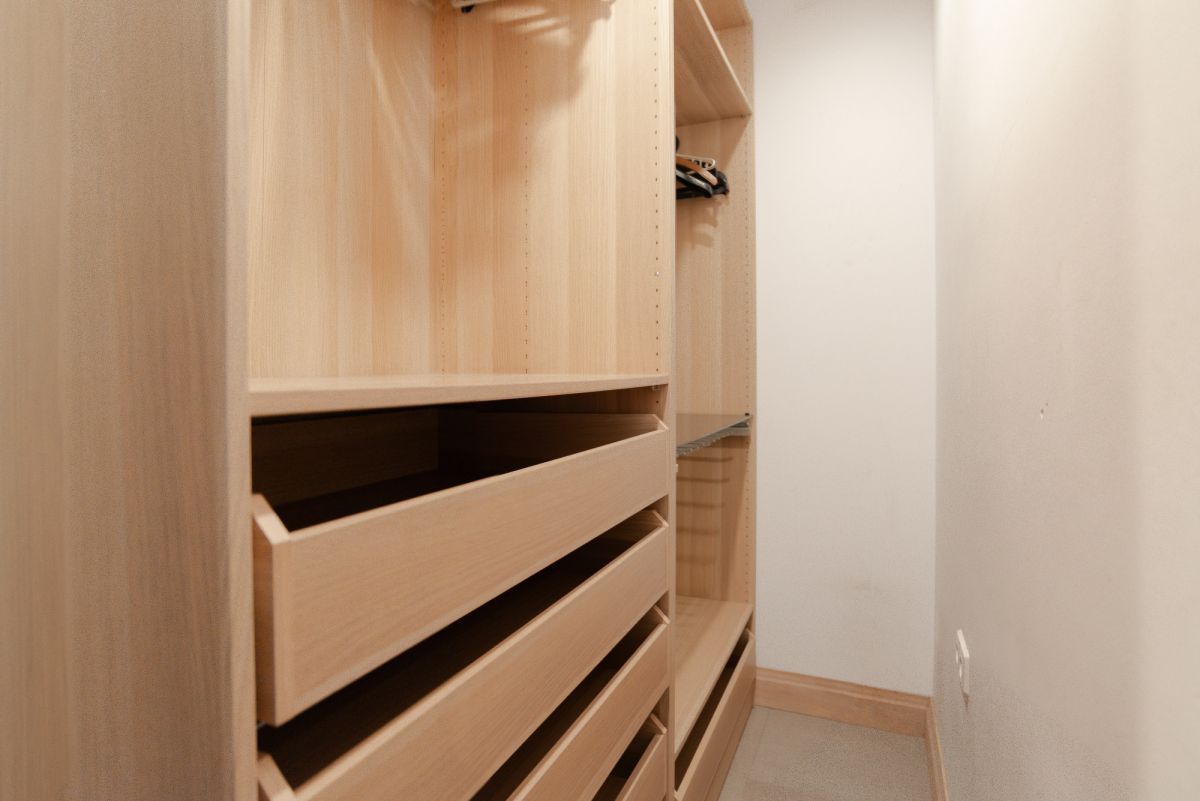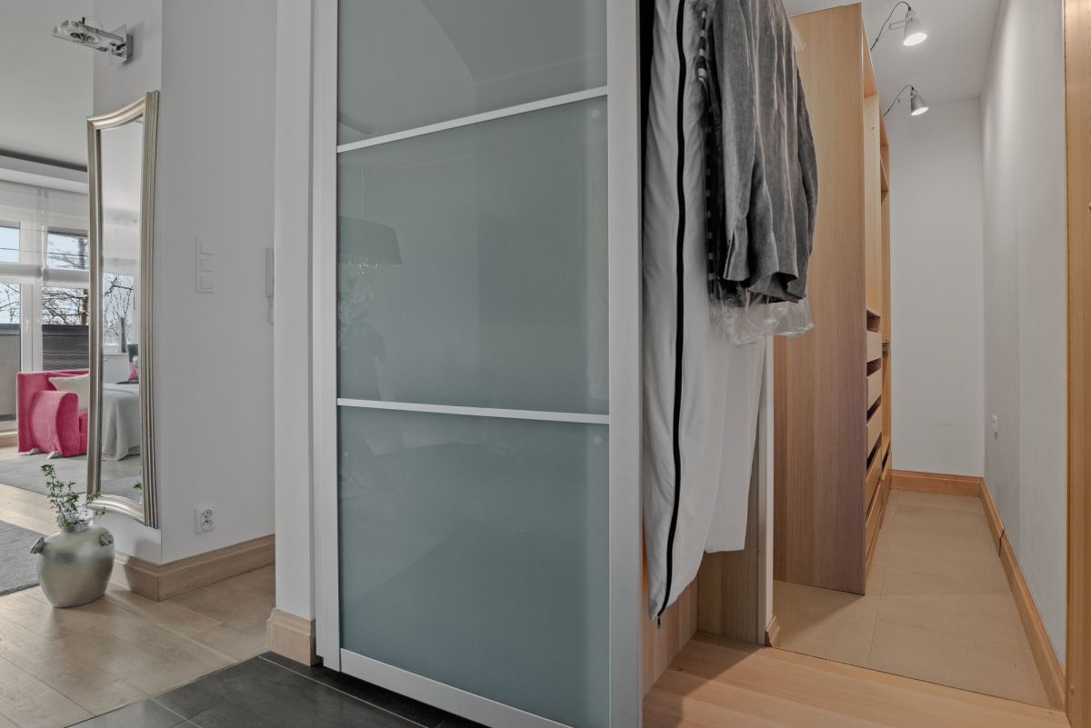 * ukrytą garderobę.