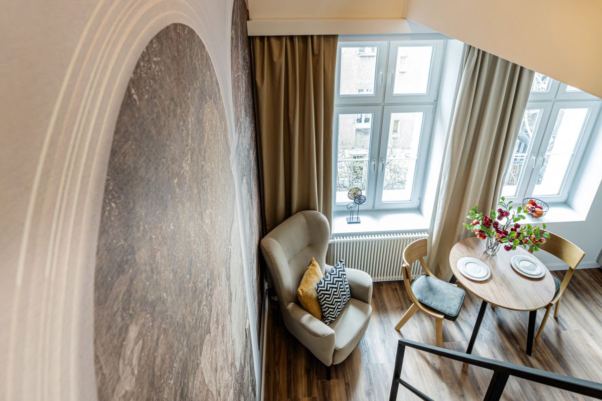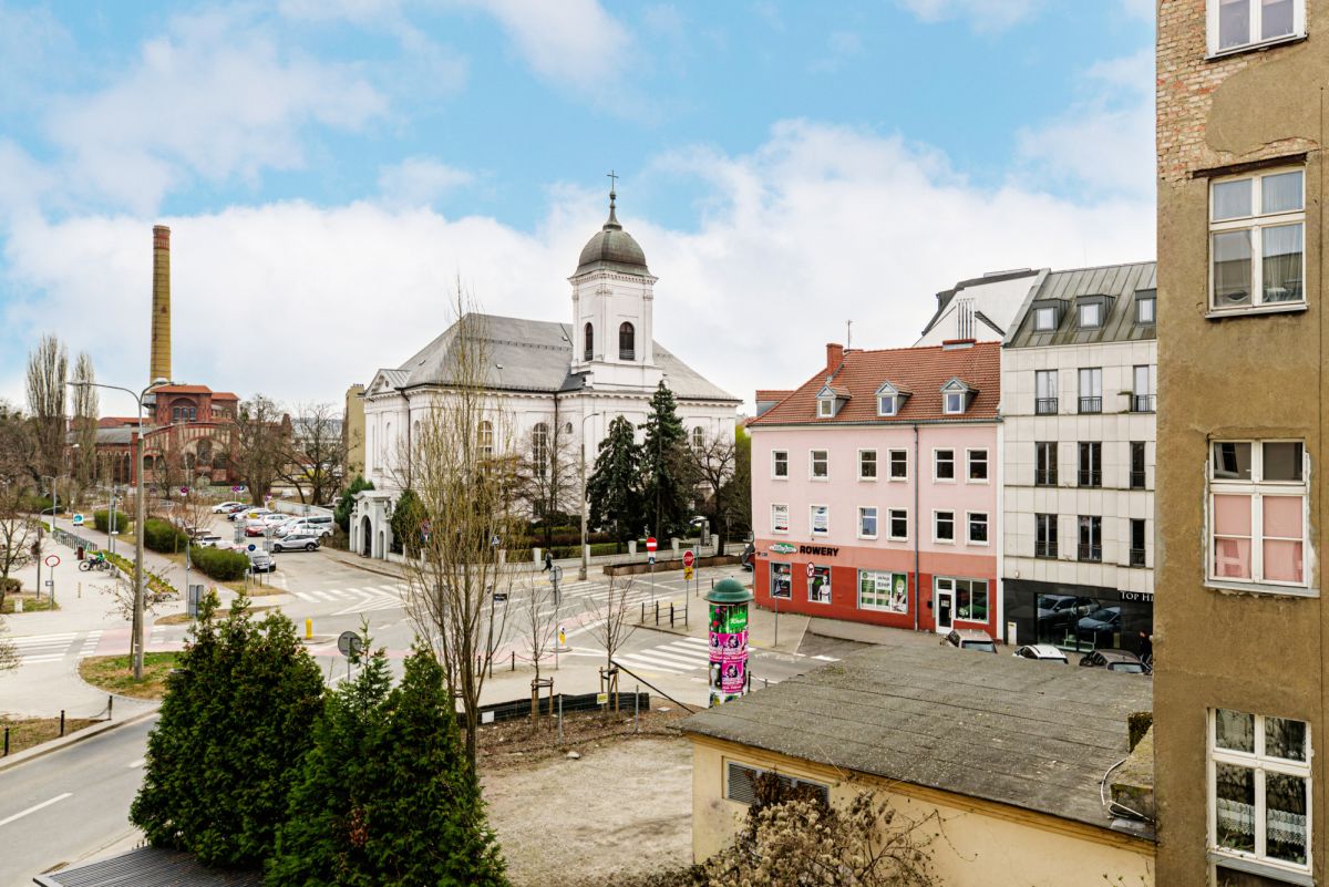 Mieszkanie wykończone, sprzedawane w idealnym stanie. Okna wychodzą na dziedziniec, stąd jest cicho i spokojnie. Z okien roztacza się piękny widok na okoliczne kamienice i kościół.