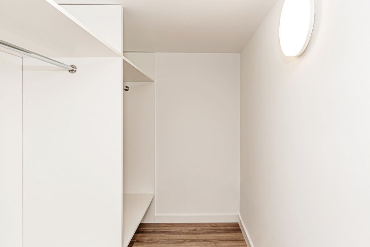 - w sypialni na antresoli - przestronna garderoba z półkami