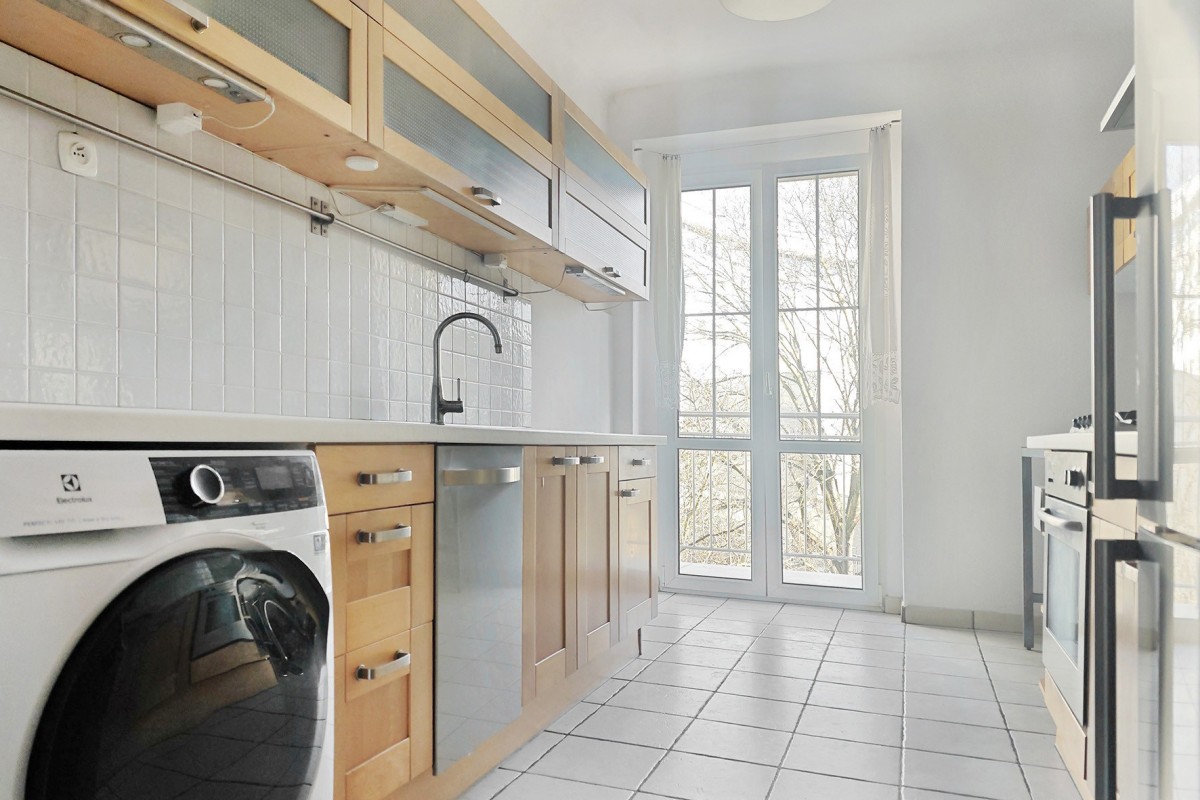 Mieszkanie jest dwustronne i posiada ekspozycję okien na wschód oraz zachód, dzięki czemu wnętrza są dobrze doświetlone przez cały dzień. Dodatkowym atutem są dwa balkony oraz duża piwnica, które zwiększają funkcjonalność i komfort użytkowania nieruchomości.