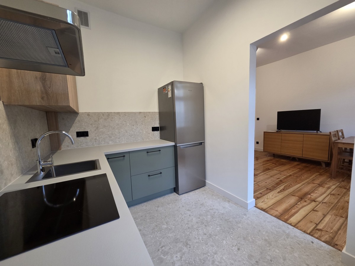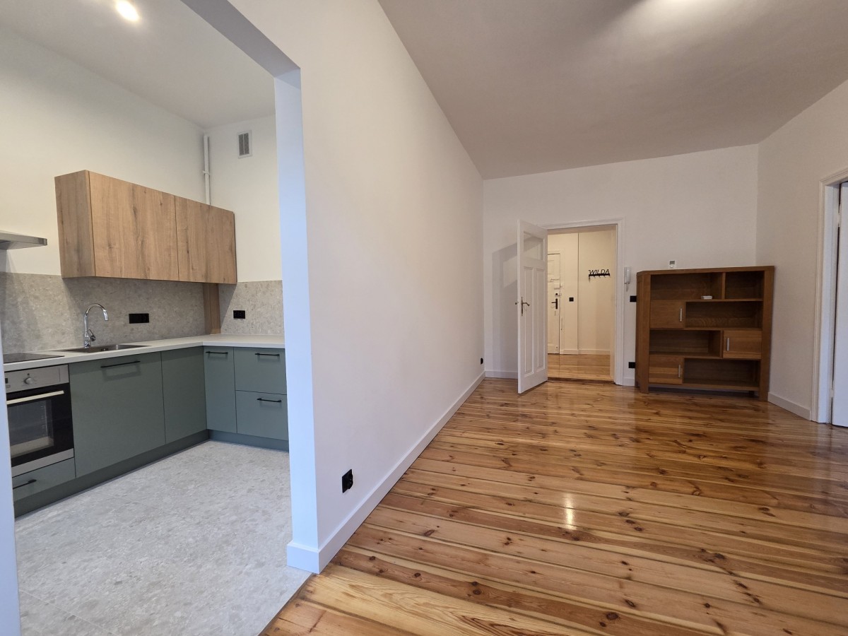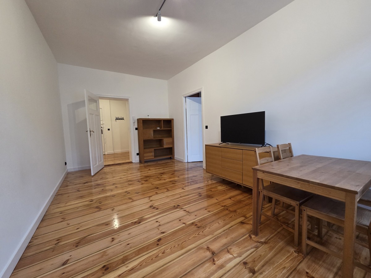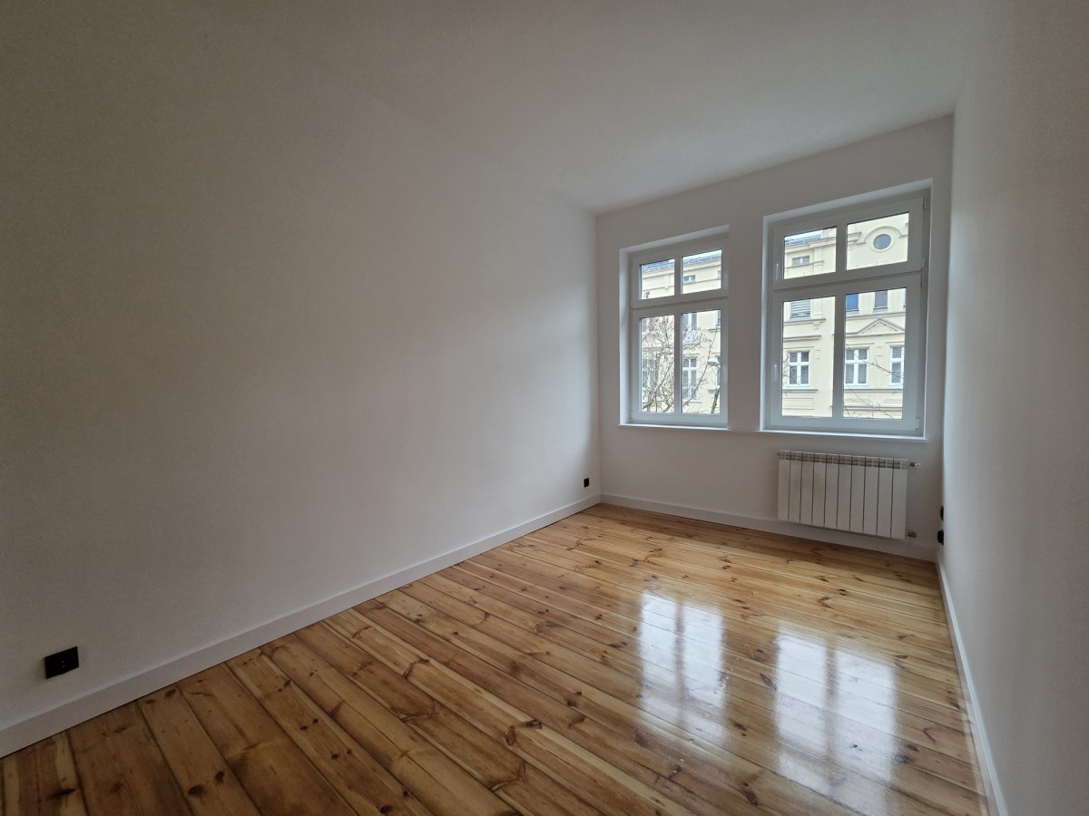 Świeżo wyremontowany lokal o pow. 58,5m2 składa się z dwóch pokoi, kuchni, łazienki oraz korytarza. Idealnie skomponowany nowoczesny wystrój w połączeniu z oryginalnymi elementami wykończenia - odrestaurowanymi, starymi deskami podłogowymi, drzwiami wewnętrznymi, przestronnymi wysokimi pomieszczeniami podkreśla kamieniczny charakter całego wnętrza.