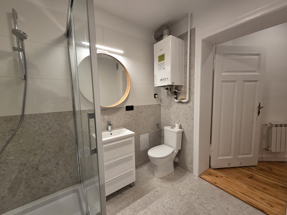 W mieszkaniu wymieniono instalację elektryczną, odnowione zostały oryginalne deski podłogowe, wymieniono na najlepszej jakości stolarkę okienną, zainstalowano nowoczesne ogrzewanie gazowe - piec dwufunkcyjny.