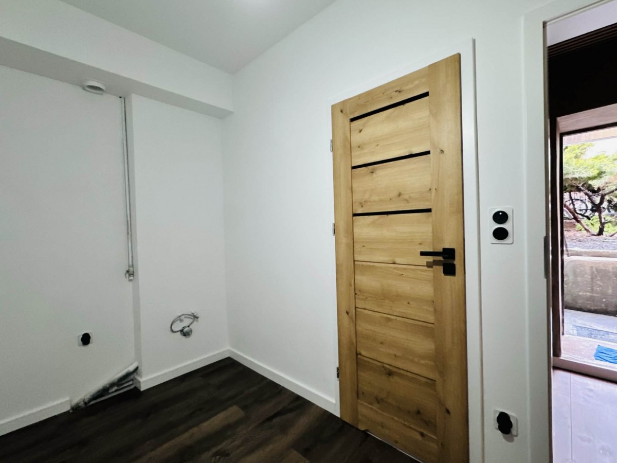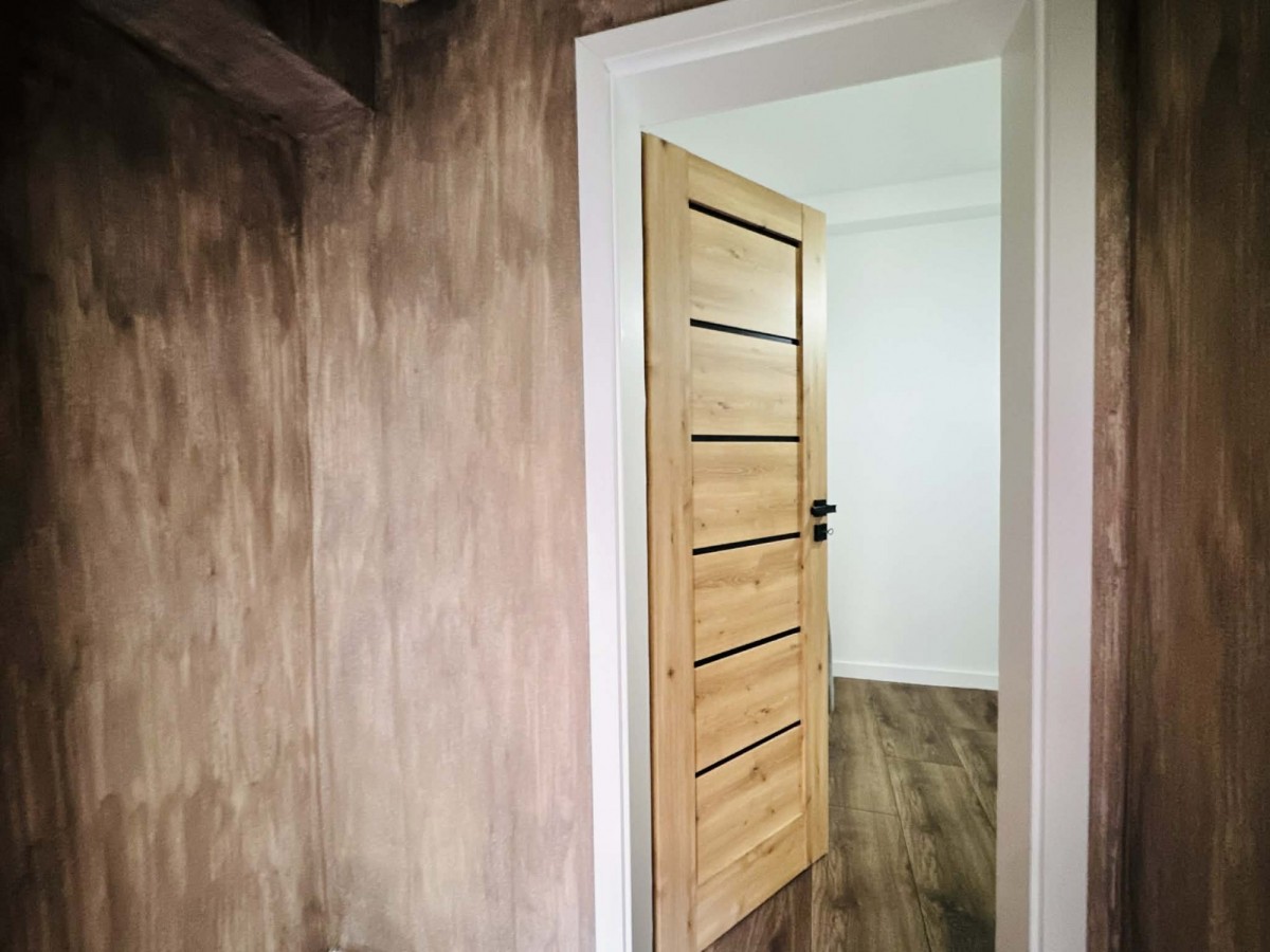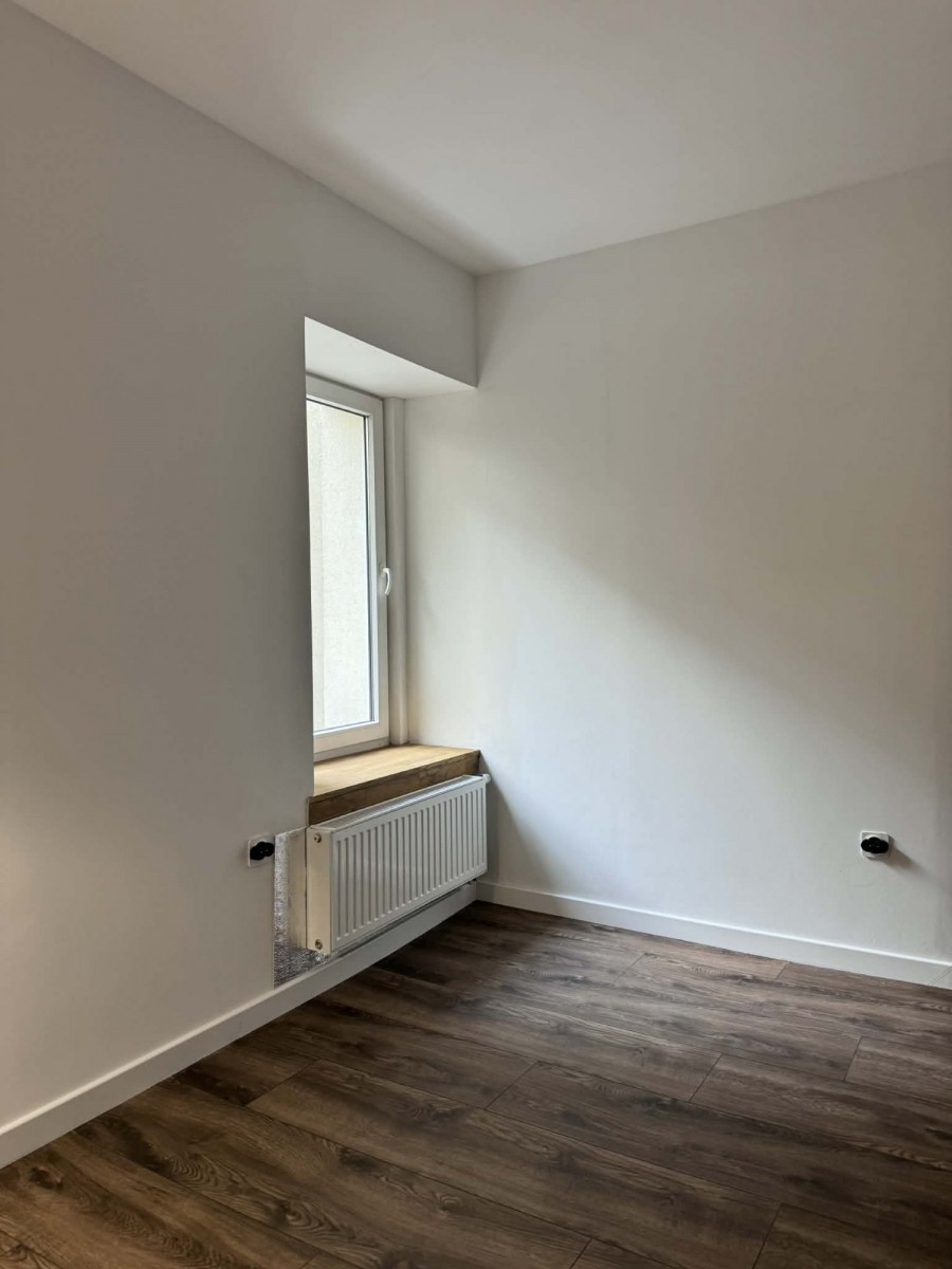 W całym mieszkaniu położono nowe podłogi, zamontowano nowe listwy, drzwi oraz ościeżnice. Wymieniono okna i parapety. Ściany zostały odmalowane na biało, co daje neutralną bazę do własnej aranżacji.