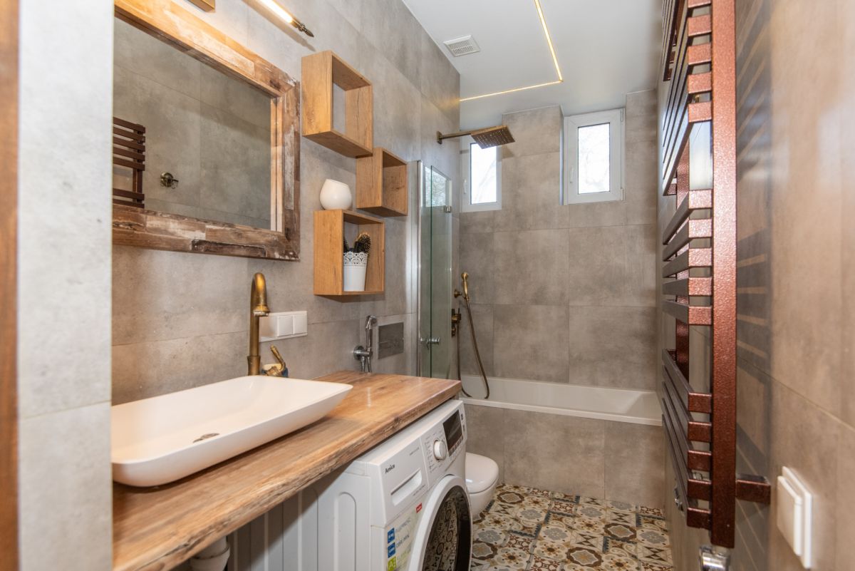 - łazienkę wyposażoną zarówno w wannę, jak i prysznic,