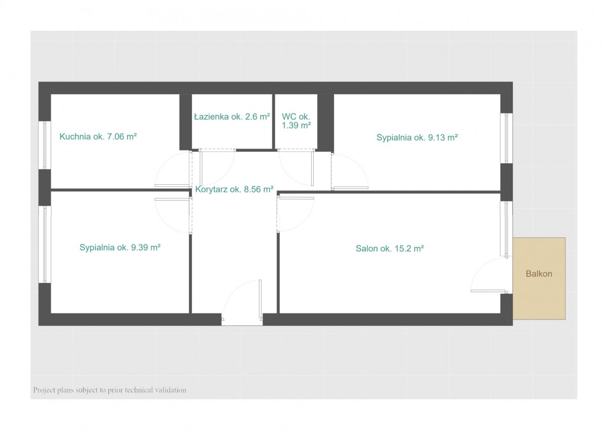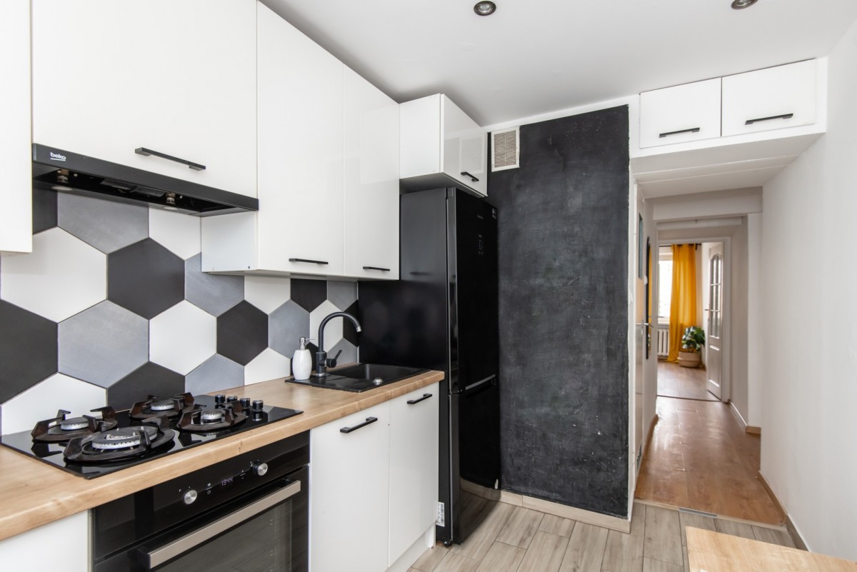 Układ mieszkania: niezależny z oddzielną, jasną kuchnią, salon z wyjściem na balkon, dwie sypialnie, łazienka oraz toaleta.