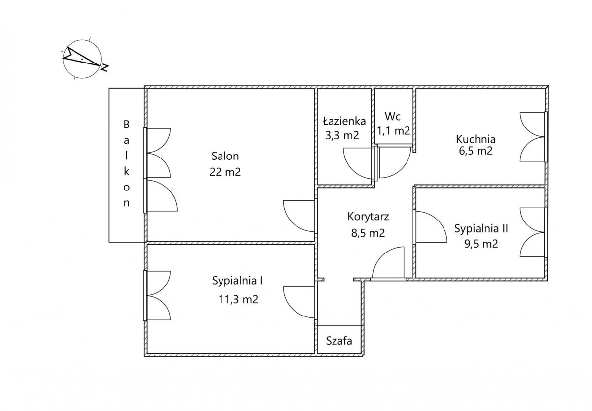 Wystawa okien północ-południe, balkon od strony południowej.