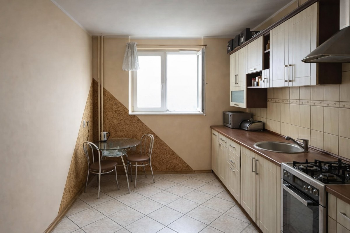 Stan: mieszkanie wymaga remontu (wyrównanie i malowanie ścian, cyklinowanie parkietu, wymiana kranu). Okna sprawne, drewniane.