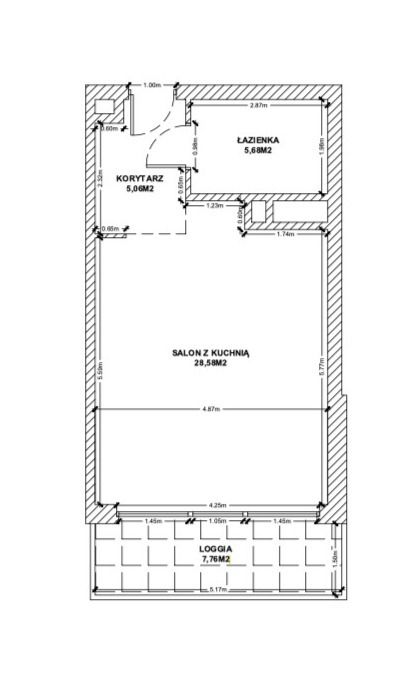 -38,76 przestrzeni możliwej do zaaranżowania jako kawalerka lub dwa pokoje