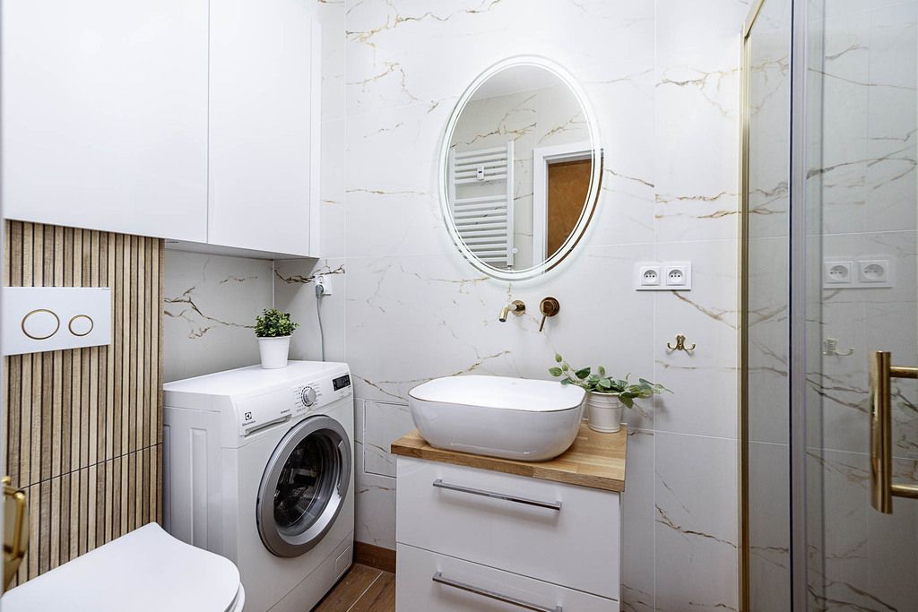 Bathroom: 3.19 m² – stylish, with shower and washing machine.
