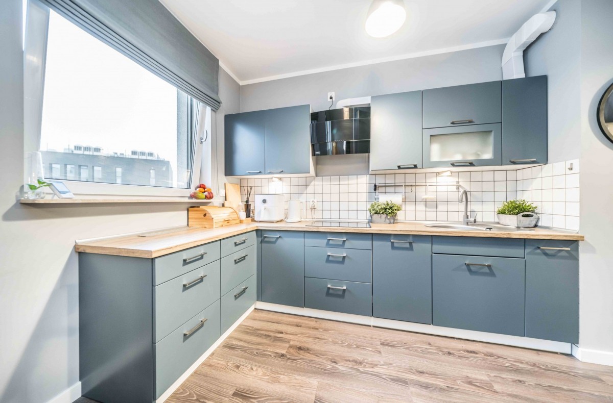 • zabudowa kuchenna z AGD: płyta indukcyjna, piekarnik, zmywarka, lodówka,