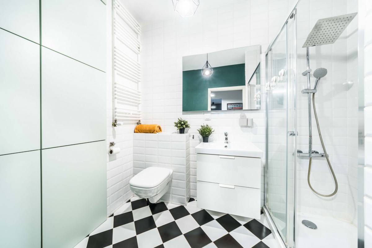 • ogrzewanie podłogowe w strefie prysznica i umywalki,