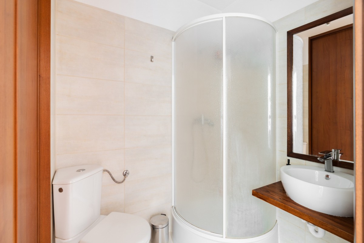 - Łazienka z prysznicem oraz szafą w zabudowie, która pomieści pralkę, wszystkie kosmetyki oraz środki czystości